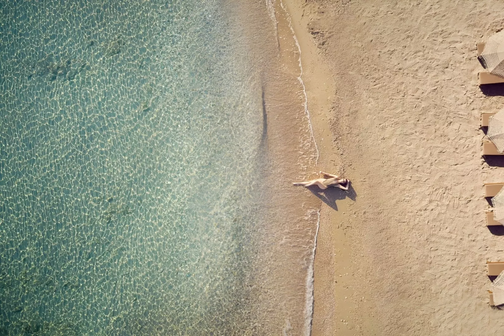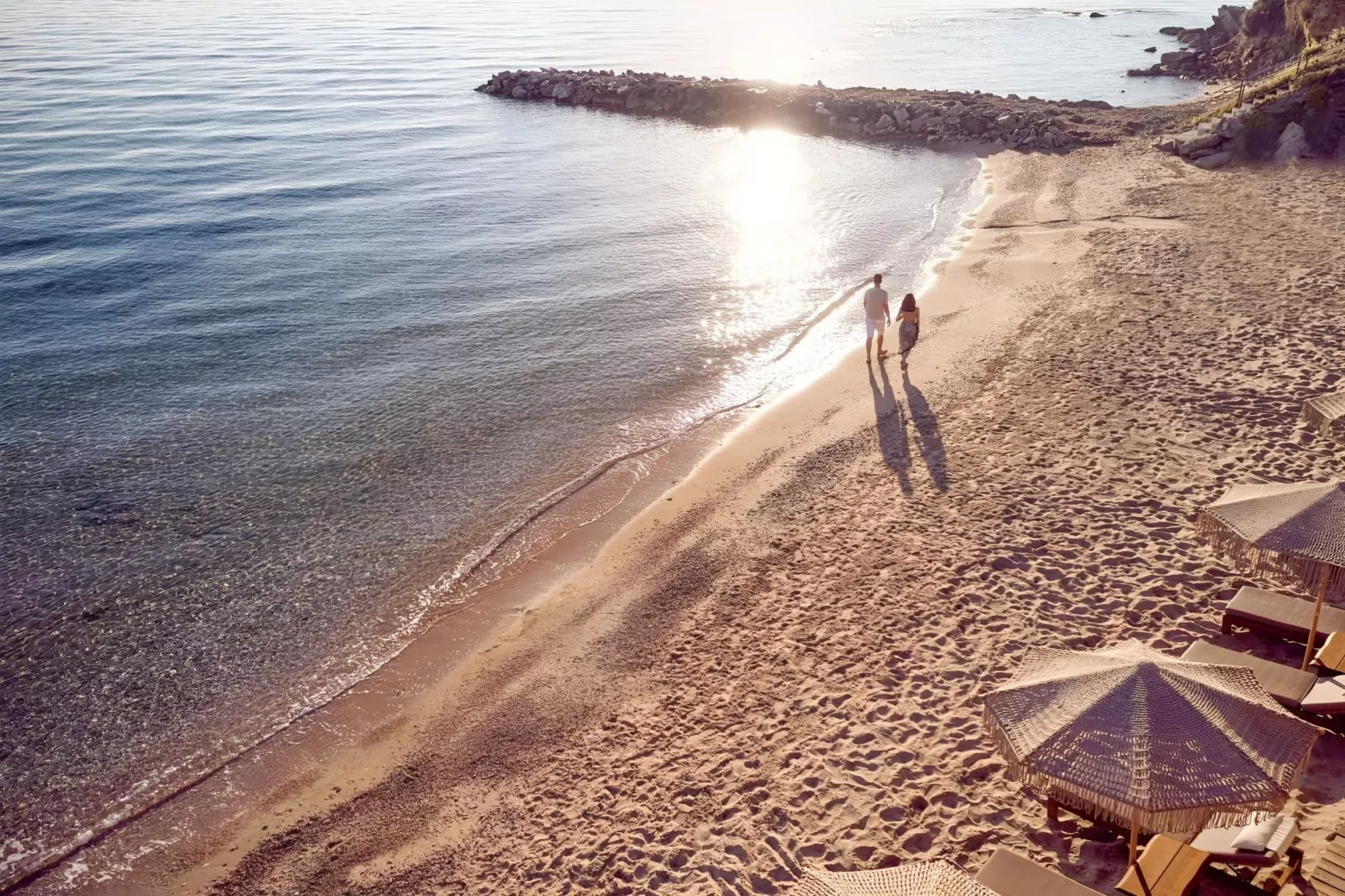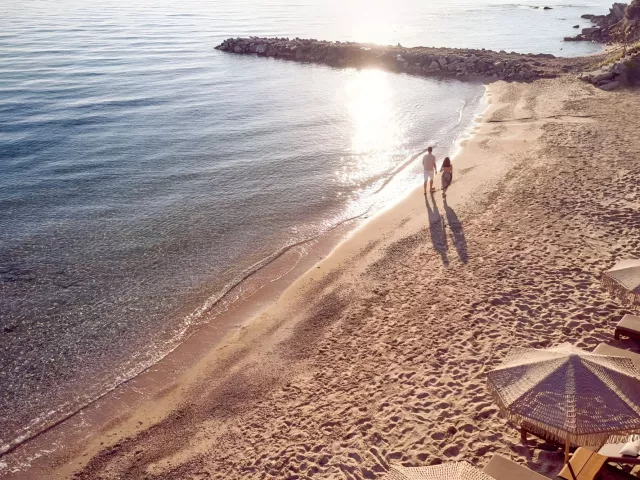 Hotel priamo na piesočnato-kamienkovej pláži, lehátka a slnečníky zadarmo.
