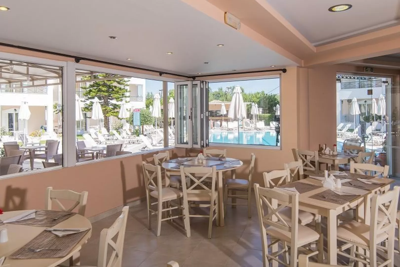 Hotel pozostáva zo 7 trojposchodových budov a ponúka 59 izieb. K dispozícii je vstupná hala s recepciou (24 hodín), Wi-Fi vo vstupnej hale, reštaurácia, bar, bazén so slnečnou terasou a bazénový bar. Pre deti je pripravený detský bazénik a ihrisko.