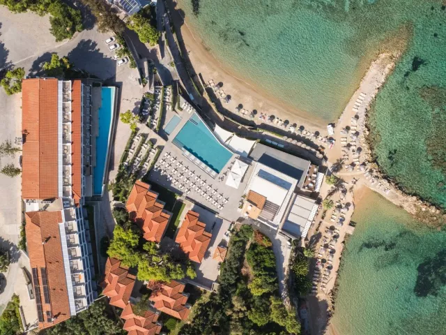 Středisko Tsilivi Vybavení hlavní budova (3 patra) a bungalovy (1 patro) vstupní hala 24 h recepce 2 výtahy v hlavní budově restaurace u bazénu - bufetová nabídka, mezinárodní kuchyně à la carte restaurace u pláže (italská kuchyně) lobby bar pool bar plážový bar Blue bar na střeše zahrada Wi-Fi v lobby zdarma infinity bazén dětský bazén vířivka lehátka a slunečníky u bazénu zdarma minimarket nedoporučujeme pro osoby s omezenou pohyblivostí Sport a zábava zdarma: fitness, vnitřní bazén, večerní animace pro dospělé, živá hudba za poplatek: vodní sporty na pláži - kajaky, wellness - masáže, sauna, procedury
