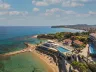 Hotelová pláž veřejná písčitá s pozvolným vstupem do moře lehátka a slunečníky za poplatek (set cca 20 EUR) osušky oproti kauci cca 10 EUR