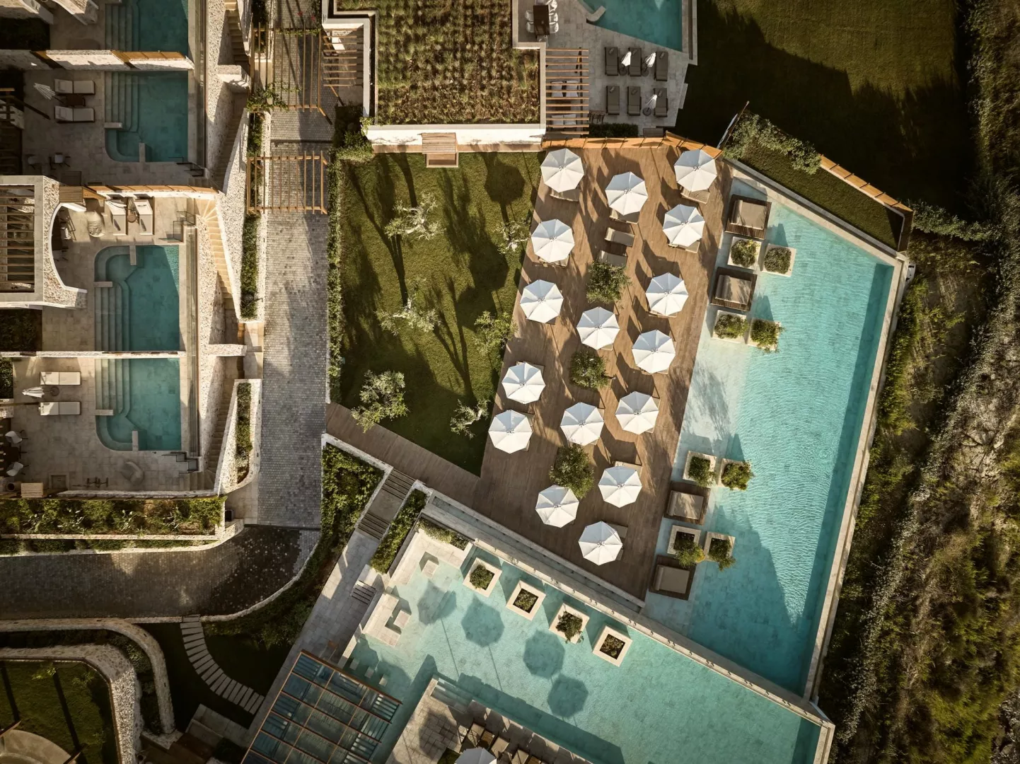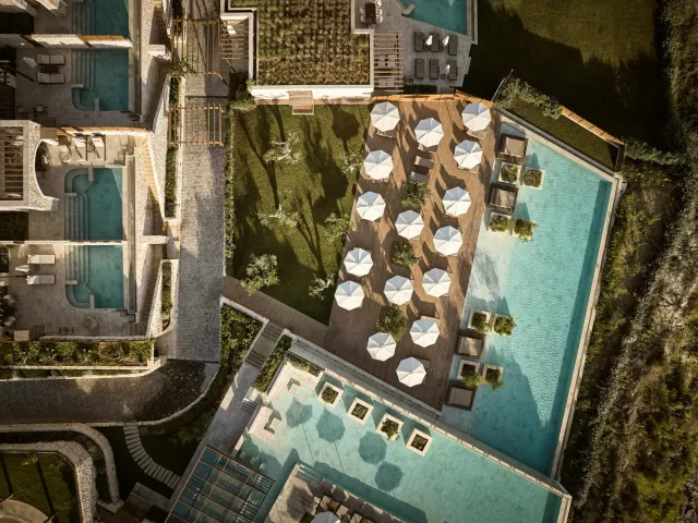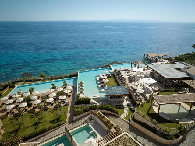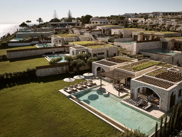 Hotel ponúka rôzne typy izieb vrátane priestranných suit s obývacou časťou. Deluxe suity sú vybavené kúpeľňou/WC (sušič na vlasy, župan, papuče), individuálnou klimatizáciou, telefónom, TV/sat., trezorom, setom na prípravu kávy a čaju, minibarom a balkónom. Rôzne varianty izieb zahŕňajú suit s výhľadom na more, suit so súkromným bazénom a rodinné suity s dvoma spálňami a dvoma kúpeľňami.
