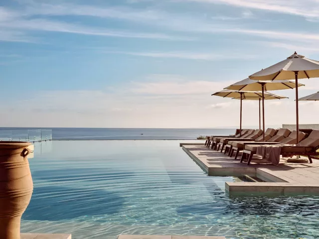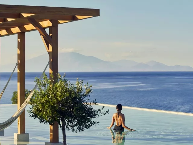 Päťhviezdičkový rezort situovaný na pokojnom mieste v blízkosti letoviska Tsilivi na východnom pobreží Zakynthosu ponúka luxusné suity a vily s vlastným bazénom či vírivkou, elegantne riešenými interiérmi a priestrannými terasami s panoramatickými výhľadmi na Iónske more. V areáli nájdete niekoľko vonkajších bazénov, vrátane infinity zóny, wellness centrum s procedúrami, saunou a fitness, a priamy prístup k pokojnej kamienkovej pláži s lehátkami. Gastronomická ponuka zahŕňa hlavnú reštauráciu s bufetom, sushi bar, rybí gril aj plážový snack bar, doplnený výberom kvalitných vín a koktailov. Vďaka kombinácii súkromia, štýlového prostredia, špičkového servisu a prírodnej polohy je Lesante Cape Resort ideálnou romantickou voľbou pre náročných hostí hľadajúcich odpočinok aj aktívne zážitky.