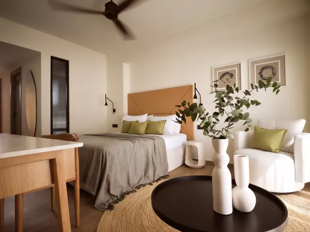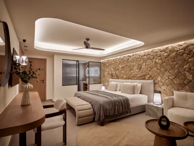 Dvojlôžková izba, Deluxe : kúpeľňa/WC (sušič vlasov), individuálna klimatizácia, telefón, TV/sat., DVD prehrávač, trezor, set na prípravu kávy a čaju, minibar, balkón alebo terasa, 30m2. Ostatné typy izieb (pokiaľ nie je uvedené inak, majú izby vyššie uvedené vybavenie) Dvojlôžková izba, Deluxe, Premium : priestrannejšie, výhľad do záhrady alebo na bazén, 35m2. Dvojlôžková izba, Executive: priestrannejšie, výhľad na bazén, 38m2. Junior Suita: výhľad do záhrady, priestrannejšie, 45m2. Rodinná izba, Deluxe: výhľad do záhrady alebo na bazén, priestrannejšie, 60m2. Suita, Outdoor Jacuzzi, Superior: výhľad na bazén, jacuzzi, priestrannejšie, 75m2. Grand Suita, Outdoor Jacuzzi: výhľad na bazén alebo more, jacuzzi, priestrannejšie, 140m2.
