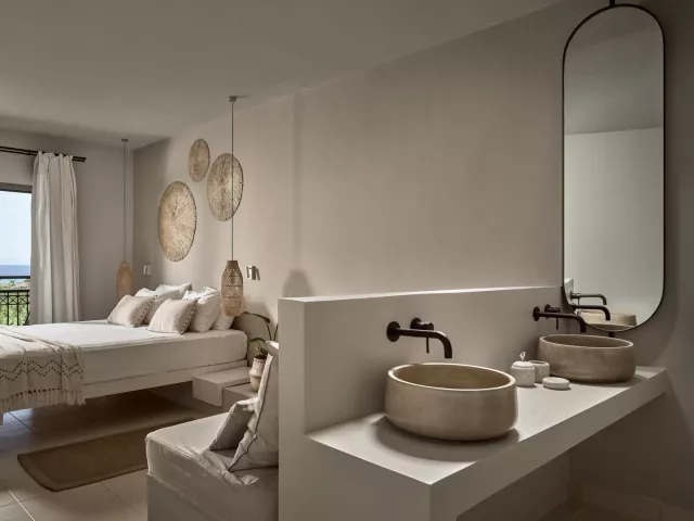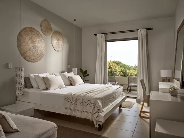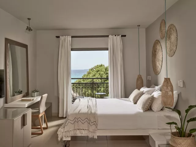 Dvojlôžkové izby s možnosťou prístelky sú vybavené vlastným sociálnym zariadením (kúpeľňa, fén, WC), klimatizáciou, SAT/TV, telefónom, minibarom, trezorom a setom na prípravu kávy a čaju, s balkónom alebo terasou. Možnosti ubytovania zahŕňajú izby s výhľadom na more, junior suity s jednou miestnosťou a obývacou časťou so sofa (prístelky pre 2 osoby), a senior suity s oddelenou spálňou a obývacou časťou so sofa.