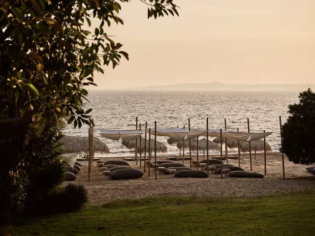 Vlastná piesočná pláž s pozvoľným vstupom do vody sa nachádza priamo pri hotelovom areáli, kde sú ležadlá a slnečníky bezplatne k dispozícii.