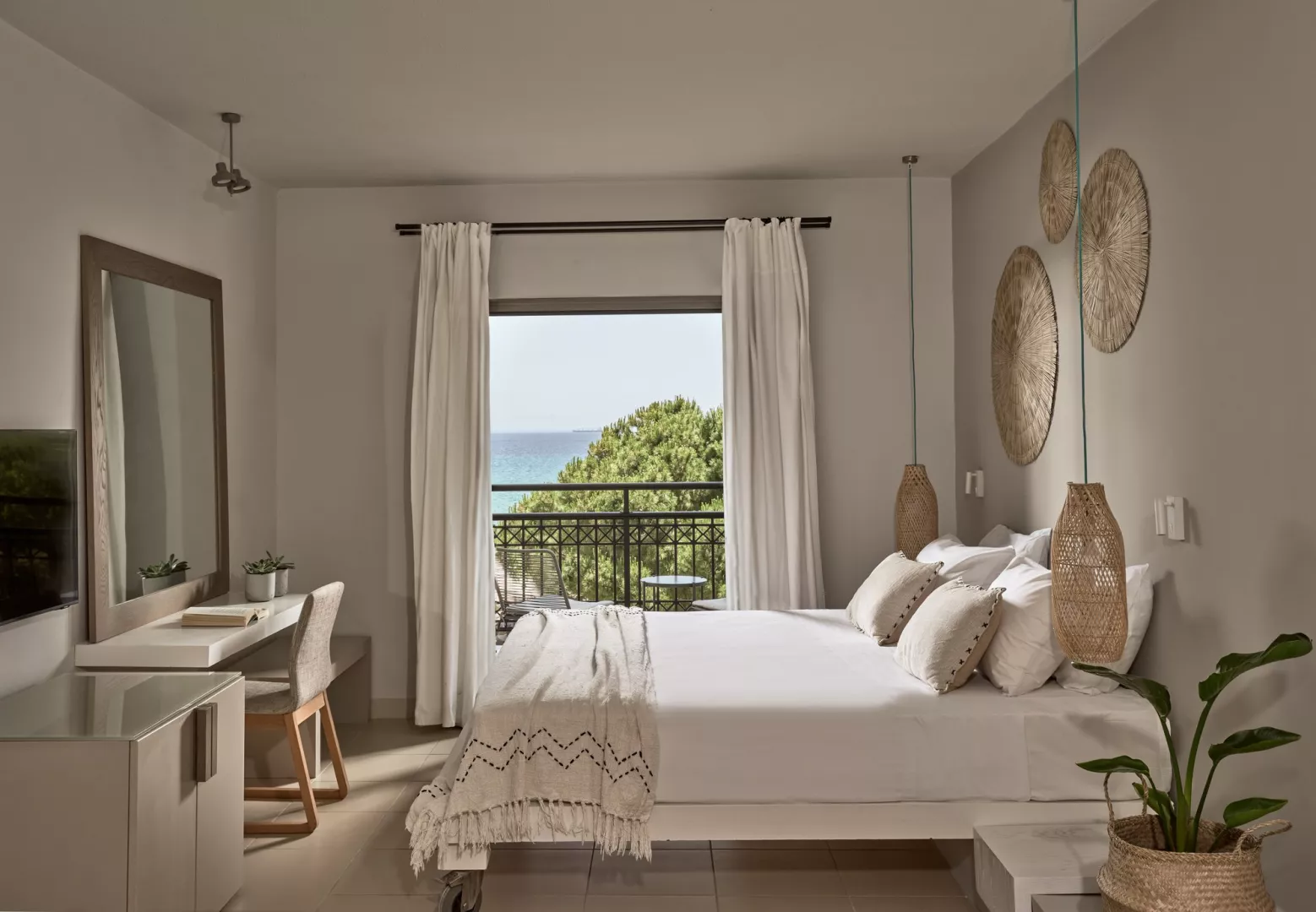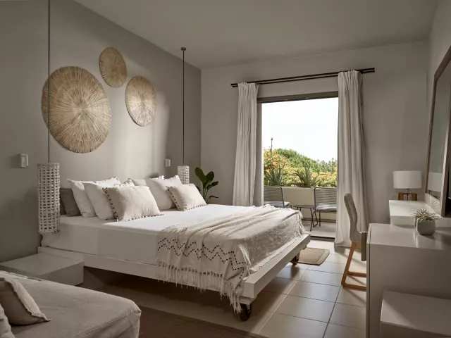 Dvojlôžkové izby sú vybavené kúpeľňou/WC, klimatizáciou, trezorom, minibarom, setom na prípravu kávy a čaju, TV/satelit, telefónom a balkónom. V ponuke sú aj izby s výhľadom na more a priestranné suity.