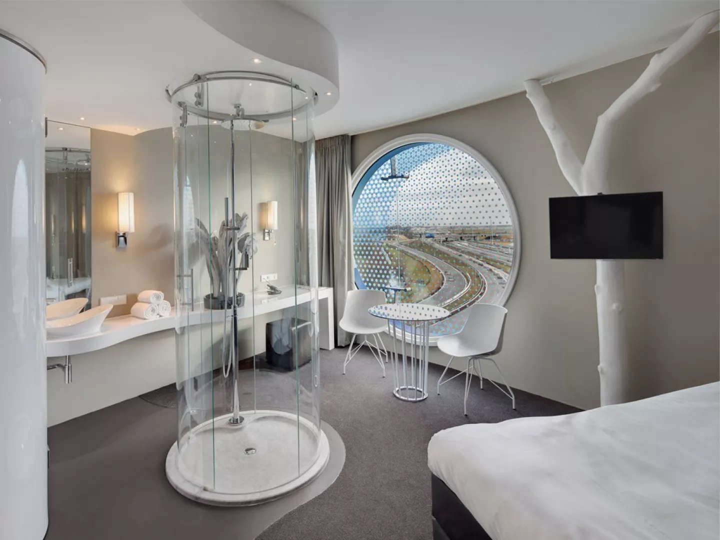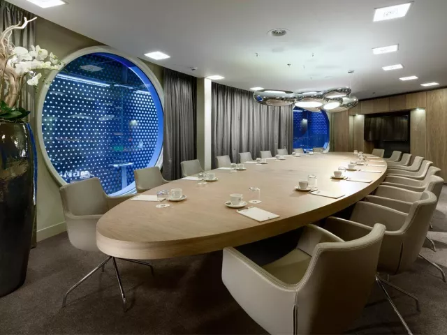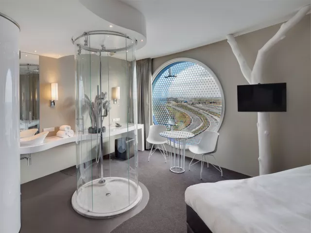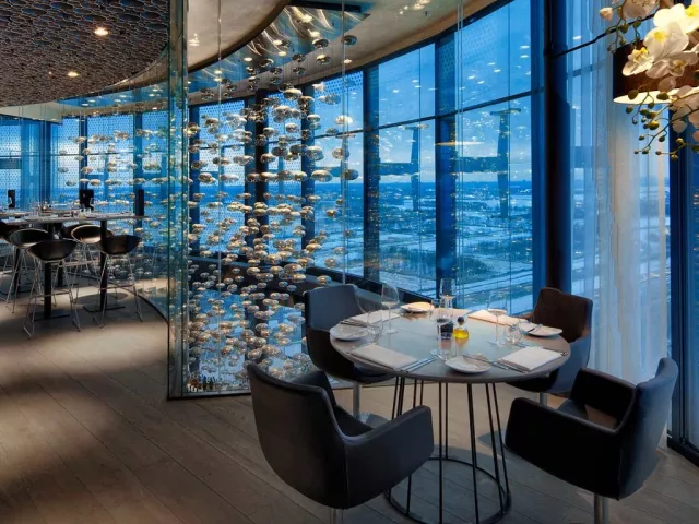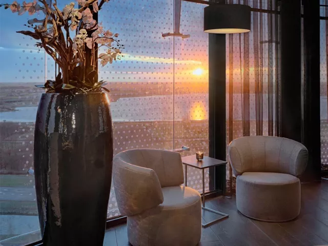 Středisko Amsterdam Vybavení celkem 120 pokojů nepřetržitě otevřená recepce s úschovnou zavzadel, čistírnou, Wi-Fi restaurace, bar 6 zasedacích místností kryté parkoviště s nabíječkami na EV půjčovna kol a e-koloběžek Ubytování pokoje jsou vybavené klimatizací panoramatickými okny postel značky DUX® sprcha uprostřed pokoje smart TV Wi-Fi (zdarma) set na přípravu kávy/čaje trezor pracovní stůl Stravování SKY Restaurant podává snídaně, obědy a večeře. Obědy a večeře formou výběru z menu - středomořsko-asijská fúze (steaky z Josper grilu, čerstvé ryby a mořské plody, dim sum, sushi, veganské bowl) SKY Bar & Lounge – tapas, signature koktejly, DJ večery Room‑service 24 h