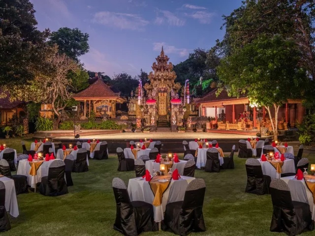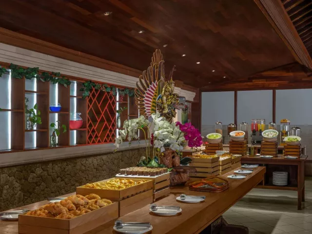 V hoteli je ponuka stravy formou bufetu na raňajky, ako aj možnosti polpenzii a plnej penzie. Stravovanie je pokryté v troch reštauráciách: Soka Restaurant (medzinárodná kuchyňa), Ratna Restaurant (morské plody, BBQ) a Cempaka Restaurant (indonézska kuchyňa).