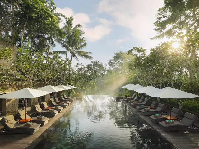 Hotel sa nachádza približne 35 km od letiska DPS. V blízkosti sa nachádzajú zaujímavé miesta ako Serayu Pottery (cca 800 m), Kráľovský palác Peliatan (cca 1,1 km), chrám Yeh Pulu (cca 1,1 km) a Tradičný umelecký trh Ubud (cca 500 m). Lesná cesta Maya priamo vedie tropickým lesom k rieke Petanu, čo je ideálne miesto na ranné prechádzky.