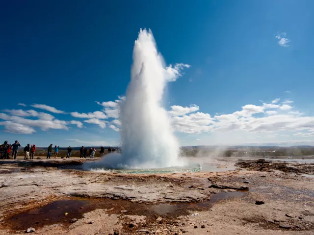 ZLATÝ TROJUHOLNÍK - VODOPÁD GULFOSS - GEJZÍR STROKKUR - GEJZÍR GEYSIRU - KRÁTER KERID Raňajky. Zlatý trojuholník , alebo tri drahokamy Islandu v zimnom odeve: najstarší parlament sveta Þingvellir , trojstupňový vodopád Gulfoss a gejzír Strokkur . Najstarší národný park Islandu Þingvellir unikátom tak z historického, ako aj geologického hľadiska – leží na tektonickom zlome eurázijskej a americkej pevninskej dosky a vy sa tak môžete ocitnúť, "jednou nohou v Amerike a druhou v Európe.“ Pokračovanie k najznámejšiemu gejzíru sveta Geysiru , podľa ktorého sú pomenované všetky gejzíry sveta. Dnes však spoľahlivo funguje už len jeho sused Strokkur vyvrhujúci vodu do výšky 15-30 metrov približne každých 5-10 minút. Len kúsok od tejto termálnej oblasti sa nachádza monumentálny, dvojstupňový vodopád Gulfoss, nazývaný „zlatý“. Padá do hĺbky 32 metrov a za slnečných dní sa kvapky odrážajú v prekrásnej dúhe. Zastávka pri kráteri Kerið – miesto, kde účinkovala aj slávna islandská speváčka Björk. Ubytovanie v južnej časti ostrova v mieste s minimálnym svetelným smogom – snažíme sa splniť jednu z podmienok na pozorovanie polárnej žiary, ostatné je na prírode. V noci sa staneme lovcami nepolapiteľného objektu s názvom Aurora Borealis. Práve ste sa dostali do subarktickej oblasti, tesne pod polárnym kruhom. Zdá sa, že máte neuveriteľné šťastie: trafili ste do správneho ročného obdobia (je dosť tma!), slnečná aktivita je dobrá a – bože môj – pred nami je jasná obloha! Fantastické! Možno vám februárová zima na Islande odhalí váš celoživotný sen zažiť kúzlo polárnej žiary !