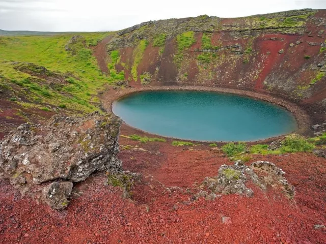 ZLATÝ TROJUHOLNÍK Zlatý trojuholník, alebo tri drahokamy Islandu: najstarší parlament sveta Thingvellir, trojstupňový vodopád Gulfoss a gejzír Strokkur . Najstarší národný park Islandu Thingvellir je unikátom tak z historického, ako aj geologického hľadiska – leží na tektonickom zlome eurázijskej a americkej pevninskej dosky a vy sa tak môžete ocitnúť, "jednou nohou v Amerike a druhou v Európe.“ Pokračovanie k najznámejšiemu gejzíru sveta Geysiru , podľa ktorého sú pomenované všetky gejzíry sveta. Dnes však spoľahlivo funguje už len jeho sused Strokkur vyvrhujúci vodu do výšky 15-30 metrov približne každých 5-10 minút. Len kúsok od tejto termálnej oblasti sa nachádza monumentálny, dvojstupňový vodopád Gulfoss, nazývaný „zlatý“. Padá do hĺbky 32 metrov a za slnečných dní sa kvapky odrážajú v prekrásnej dúhe. Zastávka pri kráteri Kerid - miesto, kde účinkovala aj slávna Bjork.