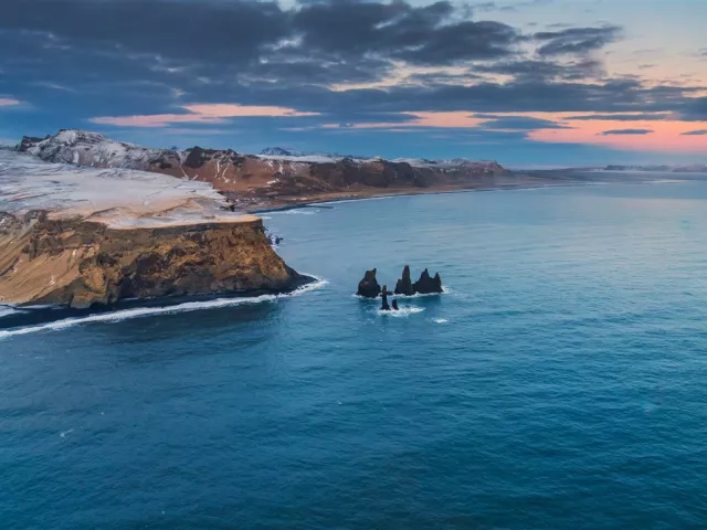 VODOPÁD SELJALANDSFOSS - VODOPÁD SKOGAR - MÚZEUM SKOGAR - VÍK - REYKJAVíK Nádherná oblasť islandského juhozápadu plná povestných prírodných krás – cestou do malebnej dedinky Vík sa zastavíme pri vodopáde Seljalandsfoss , ktorý umožňuje návštevníkom prechod „poza“ svoj vodný závoj. Nasleduje vodopád Skogar , jeden z najvyšších na ostrove a návšteva Ľudového múzea Skógar s perfektným výkladom a vyobrazením islandskej histórie. Dedinka Vík leží neďaleko magickej pláže s čiernym pieskom a bazaltovými stĺpmi všetkých veľkostí a tvarov. Kúsok odtiaľ sa z mora vynárajú tajomné útvary skamenených trolov Reynisdrangar . Výhľad na útesy Dýrholaey - južnú bránu Islandu. Návrat do Reykjavíku so zastávkou pri splaze ľadovca Solheimjokull - zažite ostrov ohňa a ľadu na vlastnej koži!.