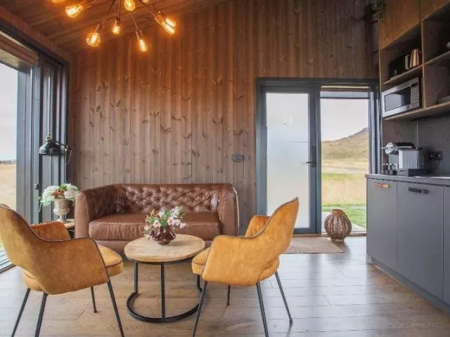 Vila Seljalandsfoss Horizons ponúka komfortné ubytovanie v útulných izbách s moderným zariadením a jedinečným výhľadom na majestátny vodopád Seljalandsfoss a okolité hory. Izby sú vybavené všetkým potrebným pre pohodlný pobyt.