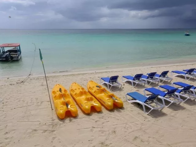 Přímo u bílé písečné pláže Seven Mile Beach, možnost potápění, šnorchlování, vodní sporty, jet ski, jízda na banánu, parasailing, kajaky. Lehátka na pláži a plážové ručníky zdarma.