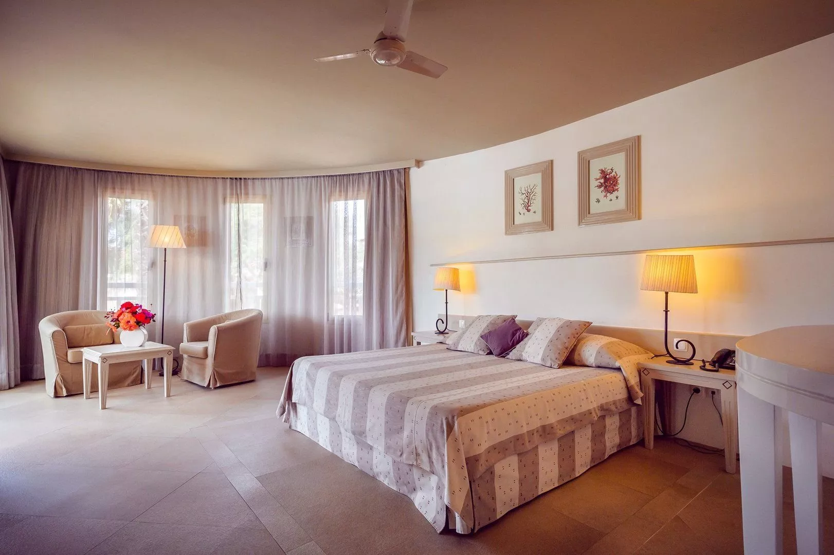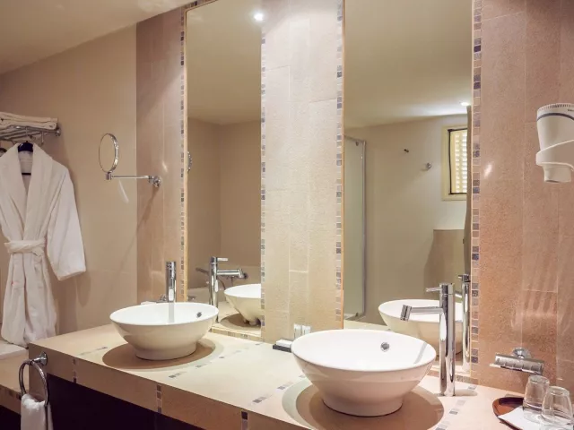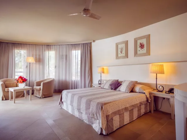 Hotel ponúka 88 izieb a 33 apartmánov, ktoré sú elegantne zariadené a prispôsobené rôznym potrebám hostí. Obytné izby poskytujú výhľad na more alebo do záhrady, zatiaľ čo apartmány majú obývacie izby, čo ich robí ideálnymi pre rodiny alebo dlhšie pobyty. Vybavenie izieb zahŕňa satelitnú TV, minibar, trezory a bezplatné Wi-Fi, pričom niektoré z nich majú aj balkóny alebo terasy.