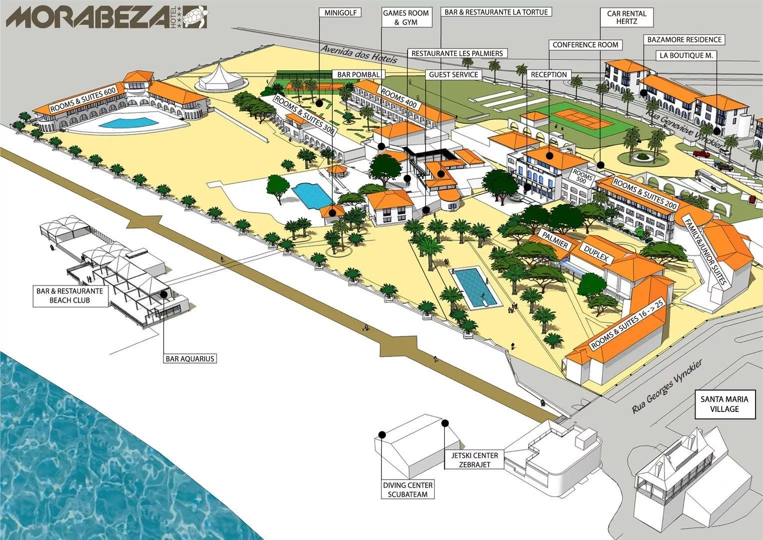 Hotel Morabeza sa nachádza priamo na ostrove Sal, vedľa bielej piesočnatej pláže Santa Maria. Je situovaný v pešej vzdialenosti od centra mesta Santa Maria, kde nájdete široký výber reštaurácií, barov a obchodov. Miestny prístav je vzdialený približne 1 km a medzinárodné letisko Amílcar Cabral (SID) len 18 km.