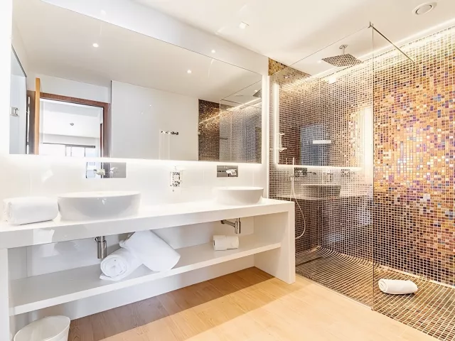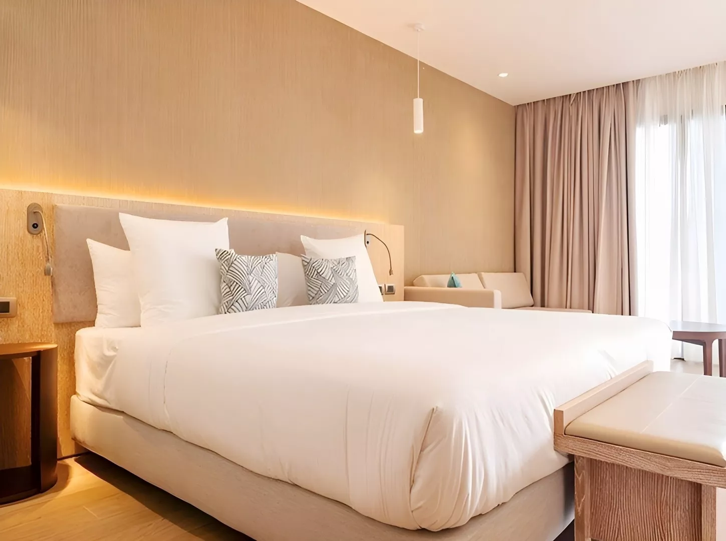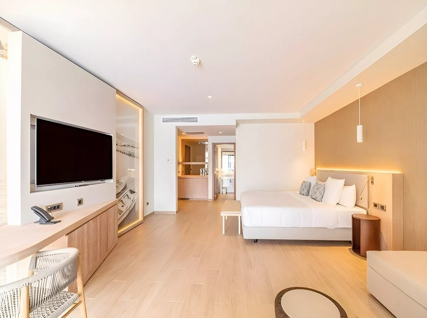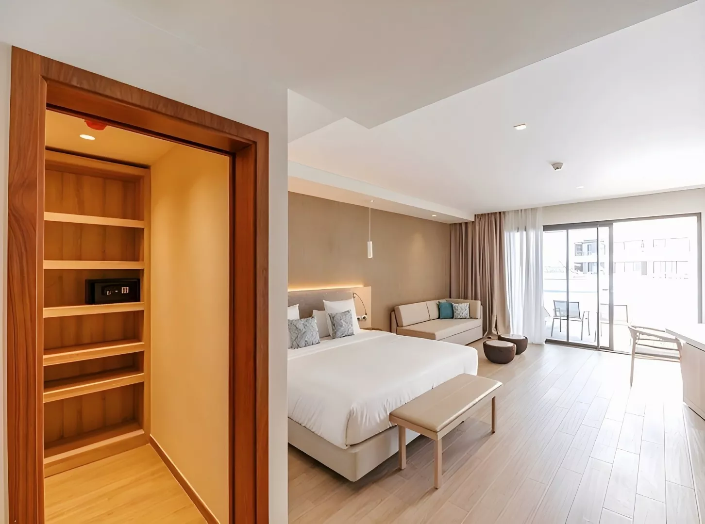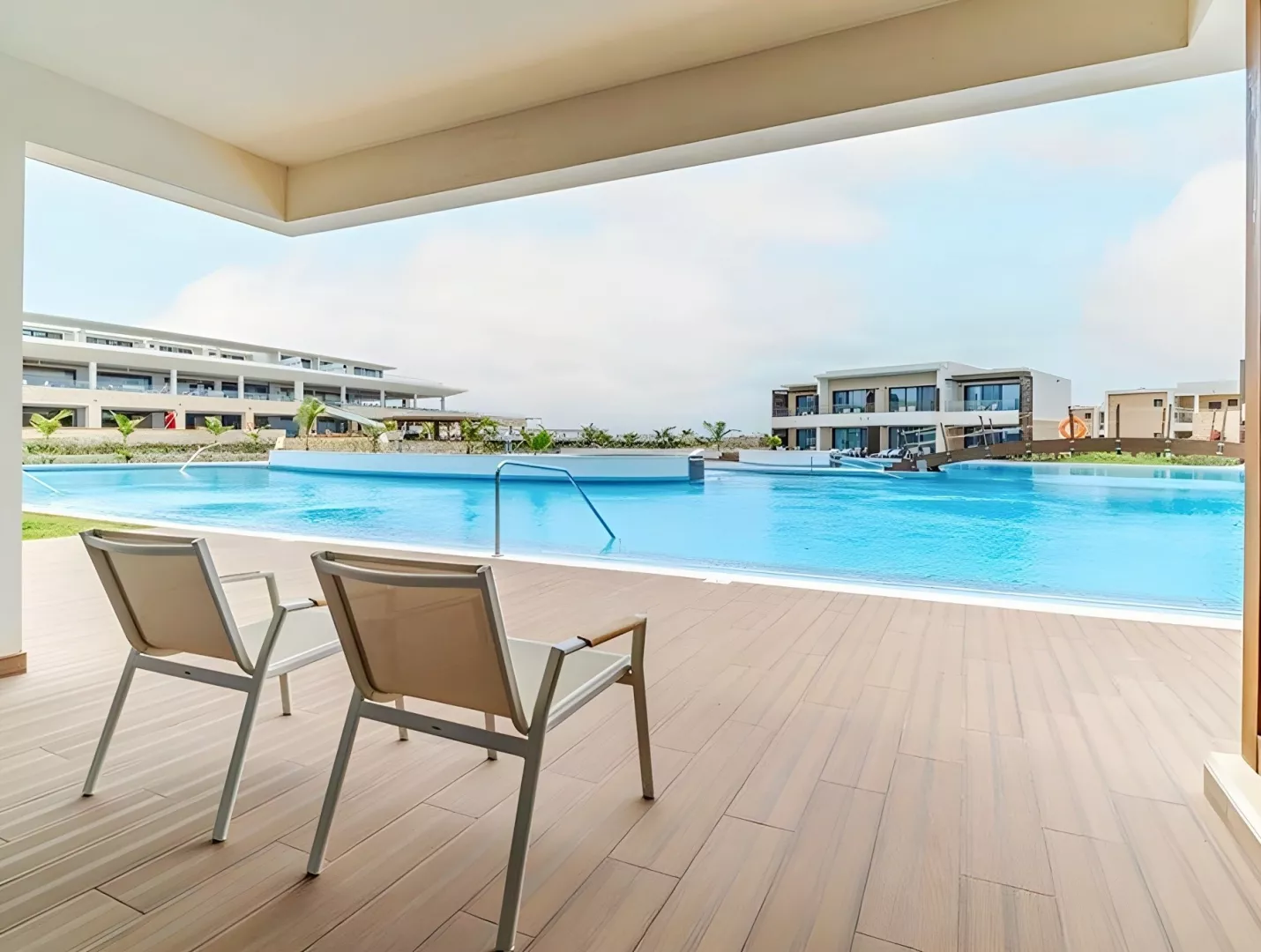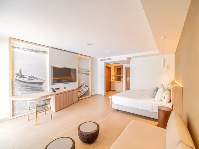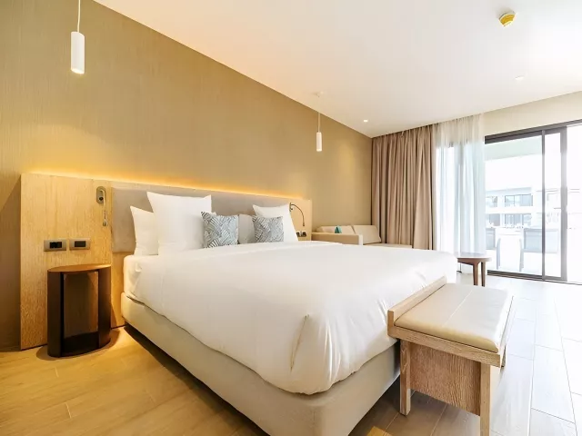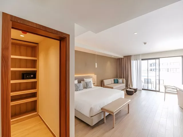 Dvojlôžkové izby Deluxe majú výhľad do záhrady či na bazén, sú priestranné (cca 35 m²) a vybavené vlastnou kúpeľňou, klimatizáciou, malou chladničkou, Wi-Fi, trezorom, TV a balkónom alebo terasou. K dispozícii sú aj ďalšie typy izieb, ako Junior suite a Deluxe Swim-up izby, ktoré ponúkajú spoločné bazény a priestrannejšie priestory. Všetky izby sú situované v menších jednoposchodových budovách v rozľahlej hotelovej záhrade.