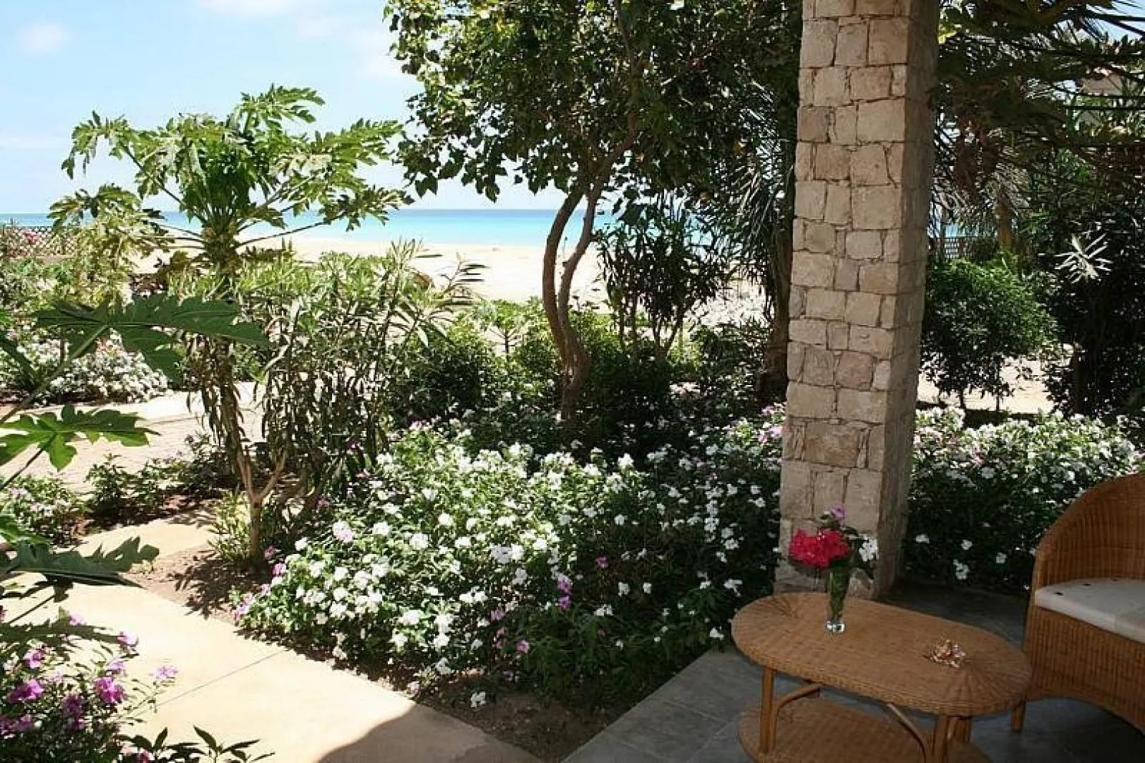 Obľúbený rezort ponúka 120 apartmánov v štýlových kamenných domčekoch, ktoré sú obklopené starostlivo udržiavanou záhradou. Klientom je k dispozícii priestranná vstupná hala s recepciou, zmenárňou, trezormi (za poplatok) a lobby barom. V hoteli je hlavná reštaurácia, bar pri móle, á la carte reštaurácia, vonkajší bazén, bar pri bazéne a opaľovacia terasa s lehátkami a slnečníkmi zdarma.