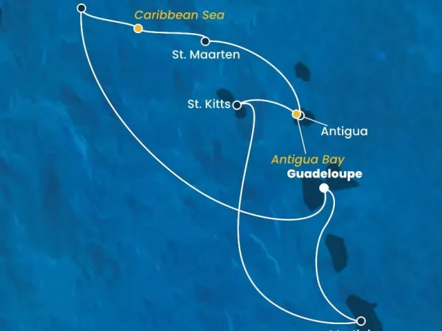Program zájezdu je pouze informační a poskytuje tipy, co v daných destinacích navštívit. Nejedná se však o prohlídku s průvodcem. Fakultativní výlety je možné zakoupit přímo na lodi, není zde však možnost česky mluvícího průvodce. 1. DEN: Guadeloupe Přílet na letiště Pointe-à-Pitre na Guadeloupe a následný transfer do hotelu. 2. DEN: Guadeloupe, cca do 23:00 Transfer z hotelu do přístavu a nalodění na loď Costa Fortuna (nejpozději do 21:00). Povinná bezpečnostní schůzka. Druhý den vás až do nočního vyplutí lodi z přístavu čeká volný program na hlavním ostrově Guadeloupe. Toto karibské souostroví je francouzským zámořským územím, tudíž je součástí Evropské unie a na jeho území se platí eurem. Na hlavním ostrově je mnoho příležitostí pro trávení volného času. Pláž Datcha je ideální volbou pro ty, kteří chtějí zažít odpočinkový den plný relaxace, plavání, šnorchlování nebo vodních sportů. Pro aktivnější vyžití je ideální volbou Aquarium de Guadeloupe, historická pevnost Fort Fleur d‘Épée, upravený přírodní park Paysager du Calvarie, hlavní městské náměstí Place de la Victorie nebo přístavní trh Marché de la Darse. Loď odplouvá z přístavu v cca 23:00. 3. DEN: Na moři Třetí den Vás čeká celý den na lodi, během kterého můžete objevovat, co loď Costa Fortuna nabízí. Můžete strávit den na lehátku u bazénu nebo se zúčastnit programu s animátory. Dále vás může nalákat k relaxaci Spa centrum nebo pro ty aktivnější je na lodi fitness centrum. Na lodi jsou také rozmístěny salónky s živou hudbou nebo divadlo, kam můžete večer zamířit na pěvecké a taneční představení. Loď mezitím popluje karibským mořem kolem ostrovů, které v dalších dnech navštívíte. 4. DEN: Tortola Tortola je jedním z Panenských ostrovů, který měří 19 kilometrů na délku a 5 kilometrů na šířku. Hlavním městem je Road Town, které leží ve středu jižního pobřeží a jehož součástí je krásný přístav. V minulosti byl ostrov důležitý pro pěstování cukrové třtiny, proto se můžete zajít podívat do bývalé výrobny cukru a nynějšího muzea (Lower Estate Sugar Works Museum), kde se dozvíte, jak život na ostrově vypadal dříve. V Road Town se nachází také botanické zahrady J. R. O´Neala, ve kterých můžete obdivovat nejen tropické rostliny, ale také želvy a ptáky. Dalším místem, které můžete navštívit, je Národní park Sage Mountain, který leží na jihozápadě ostrova. Zhruba 10 km od Road Town se nachází palírna Calwood, ve které můžete ochutnat místní výborný rum, který se zde vyrábí už čtyři staletí. V neposlední řadě Tortola láká turisty na své překrásné písečné pláže a zátoky jako jsou například: Long Bay, Apple Bay, Brewer's Bay, Smuggler's Cove a Cane Garden Cove. 5. DEN: Svatý Martin Ostrov Svatý Martin patří do souostroví Malých Antil ve východní části Karibiku. V minulosti byl ostrov vždy zajímavým pro koloniální mocnosti a dodnes je rozdělen na dvě části, severní (podřízena Francii) a jižní (podřízena Nizozemsku). 6. DEN: Antigua Bývalou britskou kolonií, kde loď zakotví je Antigua a Barbuda s hlavním a největším městem Saint John's. Ostrov je známý hlavně díky svým krásným písečným plážím, kterých je na ostrově opravdu hodně. Ve městě St. John's je dominantou kupolovitá Katedrála svatého Jana, dále jsou ve městě dvě významná muzea ostrova: Národní muzeum státu Antigua a Barbuda a Muzeum námořního umění, ve kterém jsou předměty z potopených lodí. Po ostrově si můžete udělat výlety na různá zajímavá místa, mezi která patří například písečná pláž Jolly Beach nebo Valley Church Beach, s překrásným výhledem na azurové moře, národní park Nelson's Dockyard National Park, který je na seznamu dědictví UNESCO a jeho součástí je i přístav. 7. DEN: Svatý Kryštof nebo Svatá Lucie Svatý Kryštof Svatý Kryštof je tropickým ostrovem, o který bojovaly evropské mocnosti více než století. Objevte francouzské a britské koloniální dědictví v Basseterre mezi ruinami pevností a kdysi velkolepých panství. Ve městě Basseterre naleznete několik budov z 18. století, které přežily požáry, hurikány a zemětřesení. Centrem města je "Cirkus" - kruhový objezd s věží a hodinami uprostřed. Nejkrásnější jsou však pláže tohoto ostrova, jako je např. Frigate Bay a Turtle Bay oblíbené pro windsurfing a vodní sporty, rušnější Cockleshell Bay nebo klidná Banana Bay. Svatá Lucie Tento ostrov má pestrou historii, v 16. století se stal francouzskou kolonií, a právě Francie mu dala název, který nese dodnes. Po několika bitvách se ostrov dostal pod Britskou nadvládu, pod kterou byl až do roku 1979, kdy země vyhlásila nezávislost, avšak nadále je součástí Commonwealthu. Město Castries je proto plné koloniálních památek, ale je oblíbené i pro své krásné pláže. V blízkosti centra se nachází pláže Vigie Beach a Malabar Beach, které stojí za to navštívit. Na tomto krásném ostrově si však můžete udělat i výlet do jedněch z nejkrásnějších zátok v Karibiku, kterými jsou Soufriére a Marigot Bay nebo za sopečnou přírodou u sopky Pitons. 8. DEN: Martinik Poslední zastávkou před návratem na Guadeloupe bude ostrov Martinik, který je někdy přezdíván jako “Ostrov květů” a je zámořským územím Francie. Hlavní město Fort-de-France opět nabízí mnoho atraktivit k trávení volného času. Mezi historické památky patří Fort Saint-Luis (Pevnost svatého Ludvíka), která nabízí úžasný výhled na zátoku a poskytuje vhled do vojenské historie ostrova. Katedrála Saint-Louis je dominanta města s nádhernými vitrážemi. Pro načerpání místní energie s