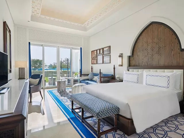 Priestranné dvojlôžkové izby v modernom arabskom štýle sú vybavené TV, klimatizáciou, minibarom, trezorom, prístupom na bezplatné Wi-Fi, županom a papučkami. Izby disponujú tiež balkónom alebo terasou.