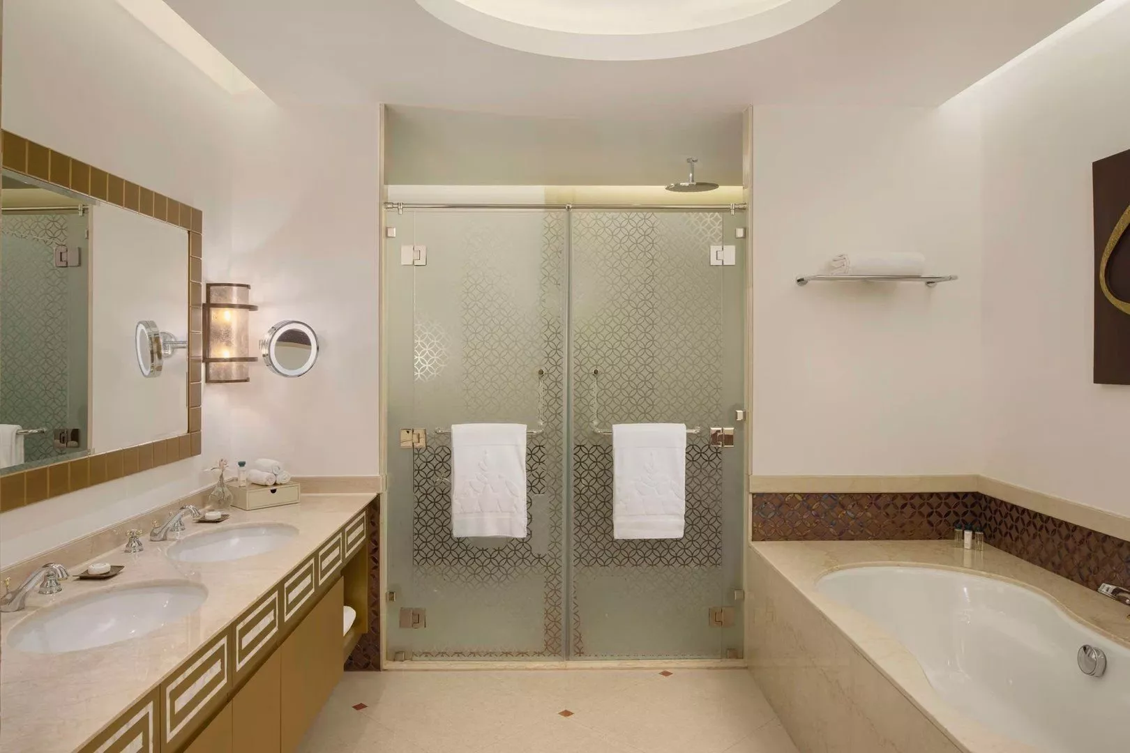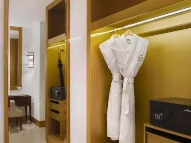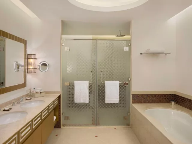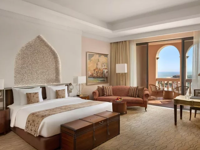 Izby sú luxusne zariadené, so súkromným sociálnym zariadením, klimatizáciou, TV, minibarom (za poplatok), trezorom, písacím stolom a setom na prípravu kávy/čaju. Deluxe izby majú rozlohu približne 75 m² a ponúkajú výhľad na The Pearl alebo more. Všetky izby majú balkón.