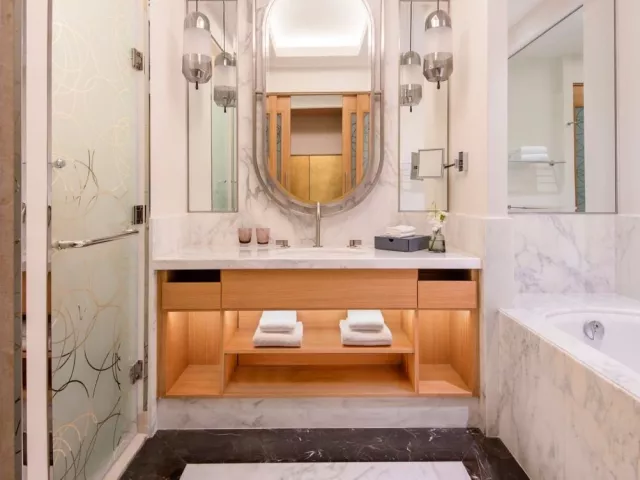 Pokoje Grand Deluxe majú rozlohu približne 44 m² s možnosťou výberu medzi 1 posteľou typu king alebo 2 posteľami typu queen. Každá izba je vybavená vlastným sociálnym zariadením (kúpeľňa s vaňou a sprchovým kútom, fén, toaleta), klimatizáciou, TV/sat, minibarom (za príplatok), trezorom a setom na prípravu kávy/čaju. Možnosť izieb s výhľadom na more je za príplatok.