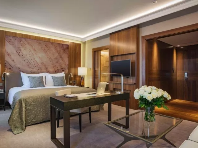 2 typy izieb Superior alebo Deluxe • izba typu Superior: 32 m² • luxusne zariadené 2-lôžkové izby • klimatizácia • TV • možnosť prípravy kávy alebo čaju • trezor (zdarma) • wifi (zdarma) • minibar (za poplatok) • vlastné hygienické zariadenie (kúpeľňa so sprchou a vaňou, WC, sušič na vlasy) • župany • papučky • balkón izba typu Deluxe (s výhľadom na národnú operu): 44 m² • luxusne zariadené 2-lôžkové izby s možnosťou jednej prístelky • klimatizácia • TV • možnosť prípravy kávy alebo čaju • trezor (zdarma) • wifi (zdarma) • vlastné hygienické zariadenie (kúpeľňa so sprchou a vaňou, WC, sušič na vlasy) • župany • papučky • pracovný stolík • minibar (za poplatok) • šatňa • balkón