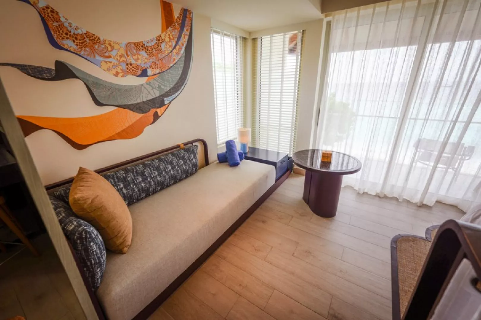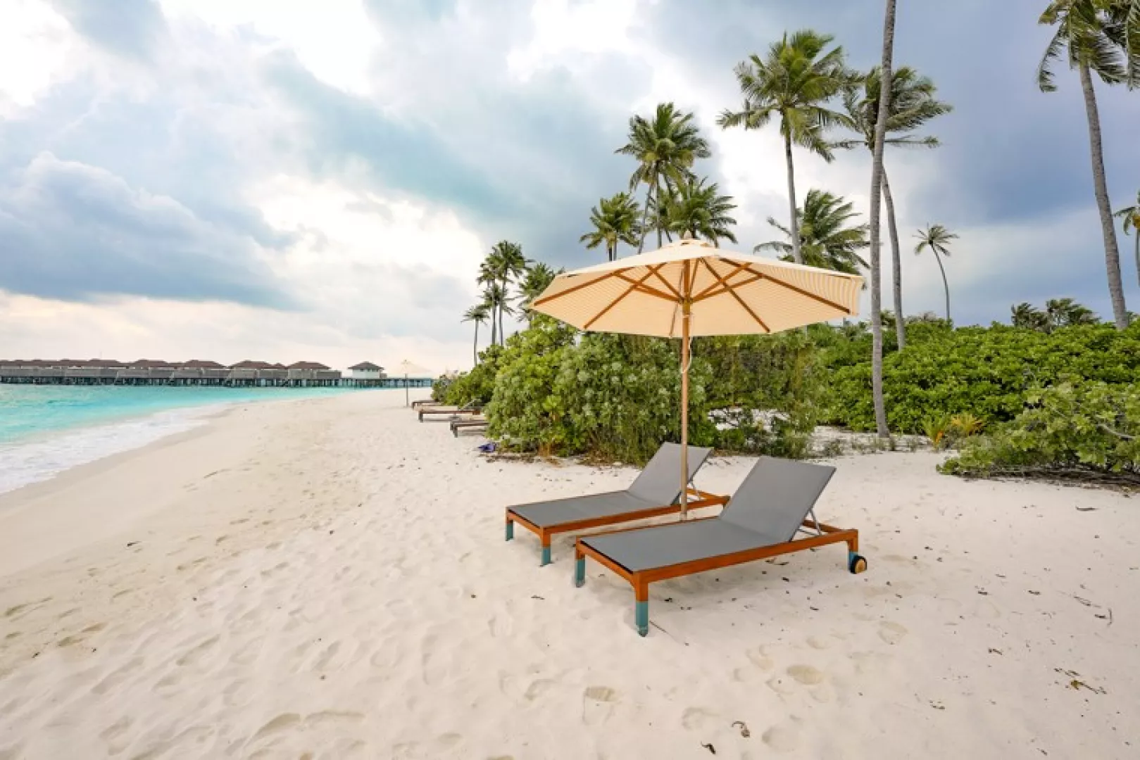 Pláž v rezorte má jemný biely piesok a tyrkysovú lagúnu, ideálne podmienky na kúpanie a šnorchlovanie, s pozvoľným vstupom do mora. Okolo pláže sú palmy, ktoré poskytujú prirodzený tieň.