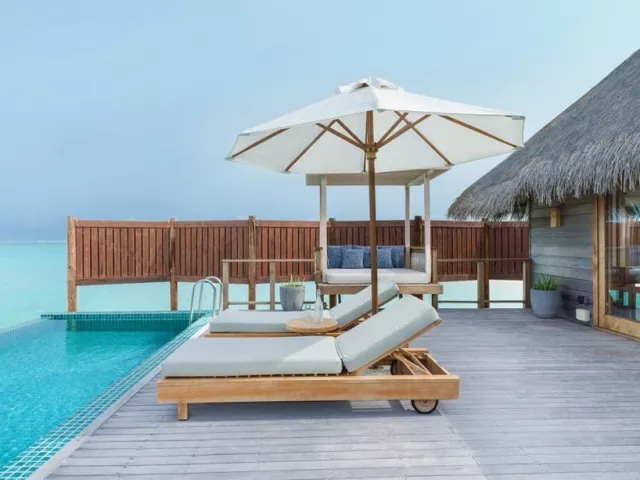 Hotel sa nachádza na dvoch súkromných ostrovoch obklopených bielymi piesočnatými plážami a krištáľovo čistými vodami Indického oceánu. Pláže sú známe svojou jemnosťou a poskytujú ideálne prostredie pre relaxáciu a rôzne plážové aktivity. Návštevníci môžu využiť priamy prístup na pláž z mnohých víl a vychutnať si šnorchlovanie či potápanie priamo z pláže.