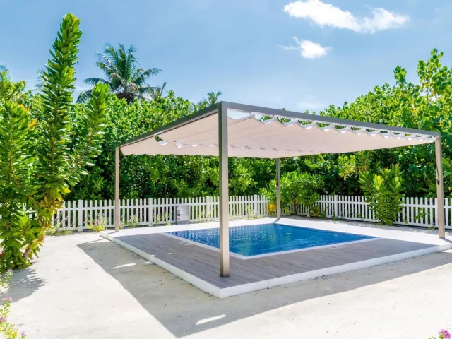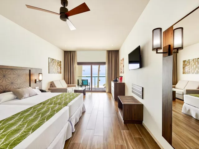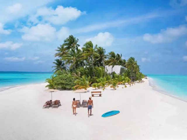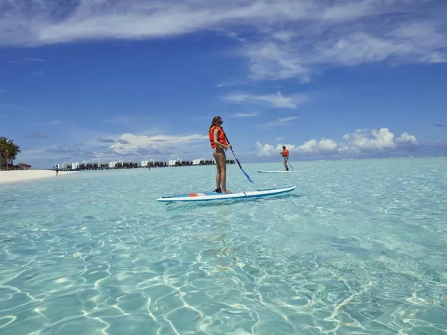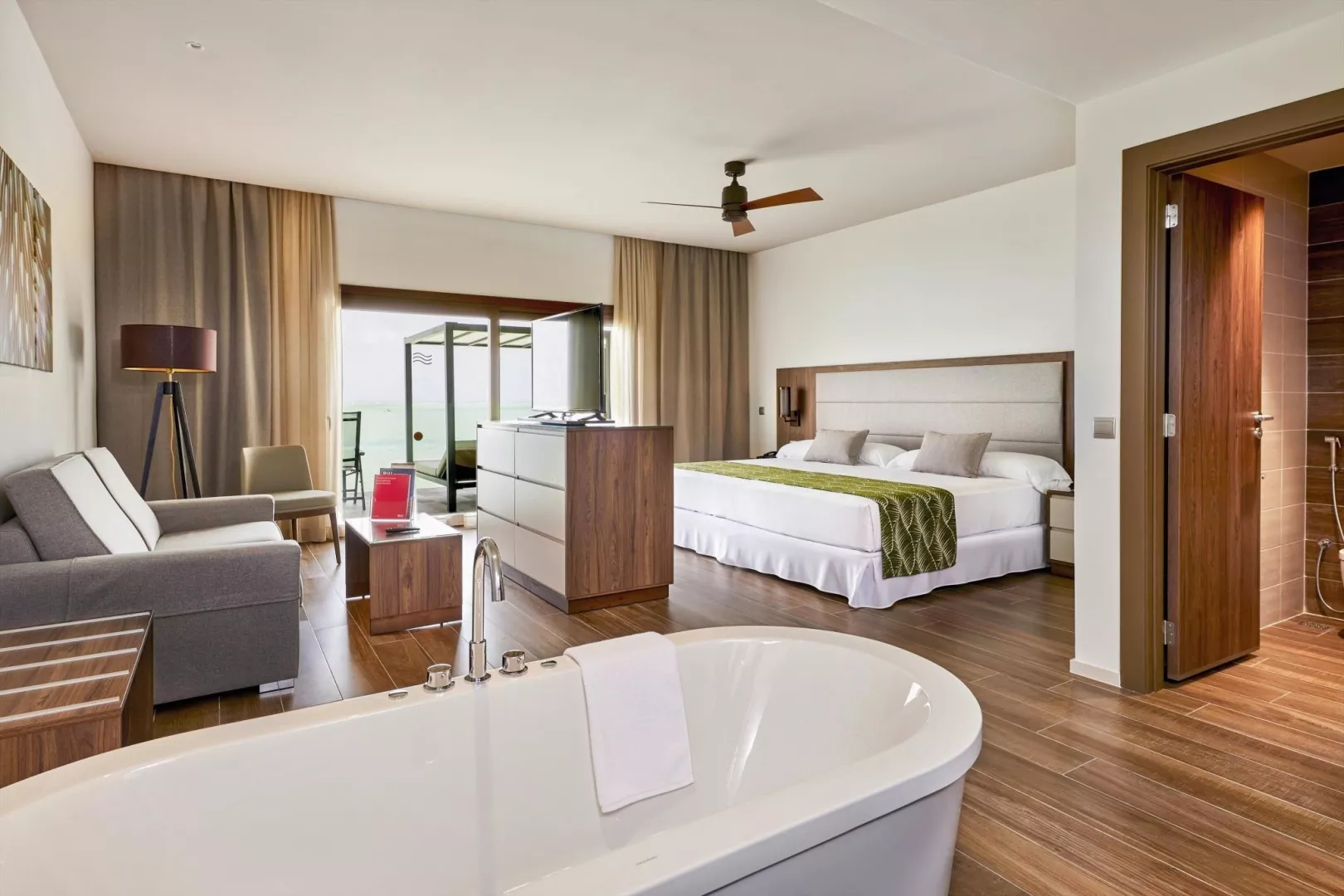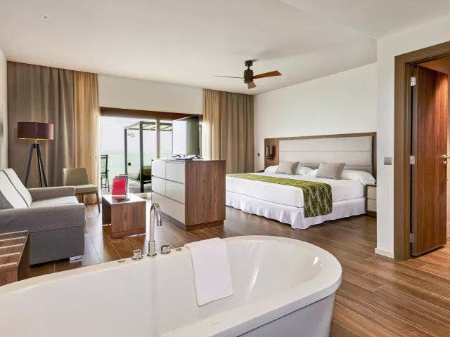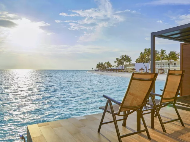 Ďalšie typy izieb zahŕňajú plážové izby s priamym prístupom na pláž a suity nad vodou s terasami a výhľadom na more.