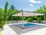 Pláž s jemným bielym pieskom ponúka bezplatné ležadlá a slnečníky pre odpočinok pri mori.