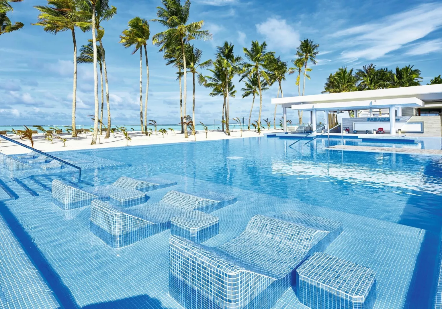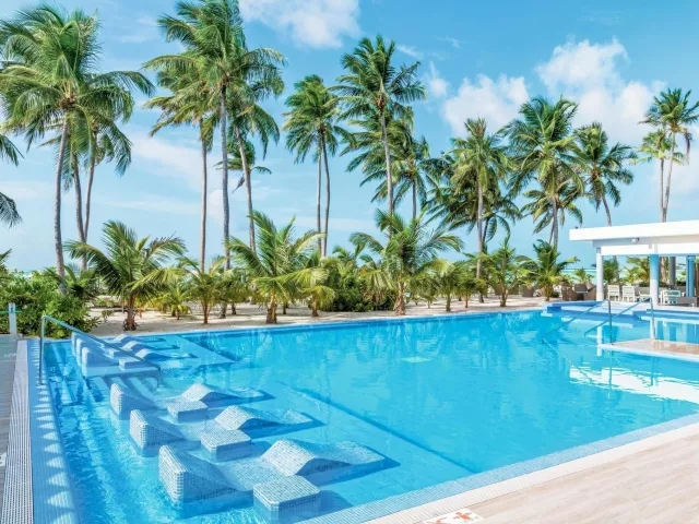 Luxusná dovolenka v raji – to je RIU Palace Maldivas, otvorený v roku 2019 na súkromnom ostrove. Rezort umožňuje využívať aj služby sesterského hotela RIU Atoll, ktorý je dostupný lávkou pre peších.