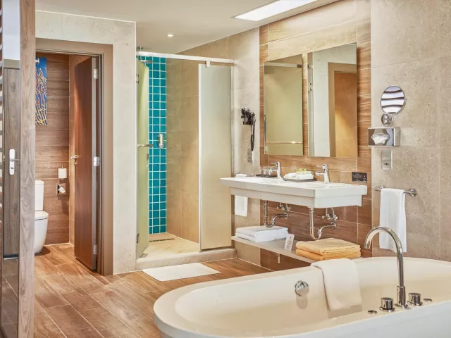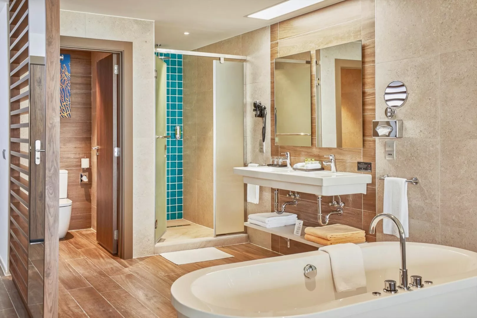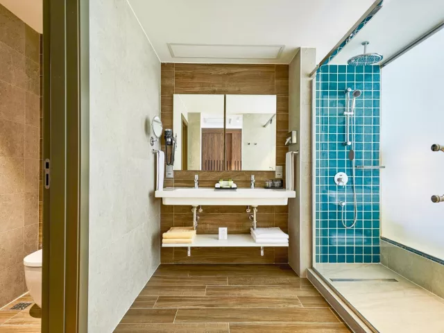 Izby sú vybavené klimatizáciou, stropným ventilátorom, kúpeľňou so sprchou alebo vaňou, sušičom vlasov, županom, papučami, Wi-Fi, Smart TV, trezorom a minibarmi. Niektoré izby ponúkajú balkón alebo terasu s výhľadom na more.