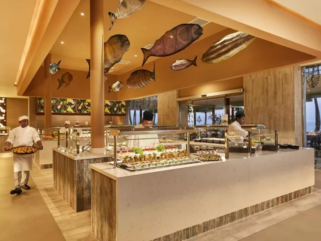 Hotel ponúka all inclusive stravovanie, vrátane raňajok, obedov, večerí a širokej ponuky nápojov po celý deň. K dispozícii sú aj á la carte reštaurácie, ktoré vyžadujú rezerváciu.