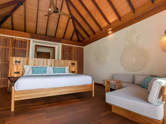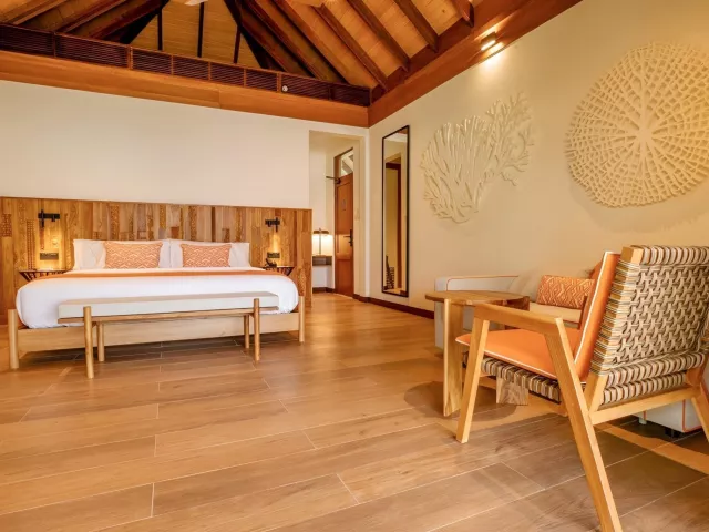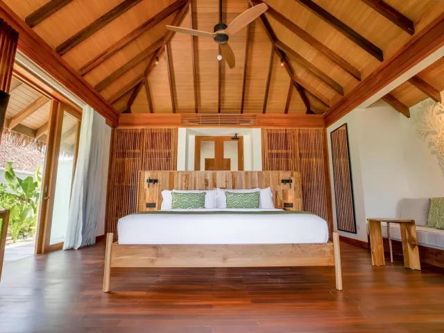 Rezort ponúka moderné a komfortné izby, vrátane Sunrise Beach Villa, Sunset Beach Villa, Sunset Water Villa a Sunset Suite Villas with Pool, všetky vybavené povinnými atribútmi ako klimatizácia, Wi-Fi a televízor s plochou obrazovkou. Niektoré izby zahŕňajú vonkajšiu kúpeľňu a terasu s prístupom k moru.