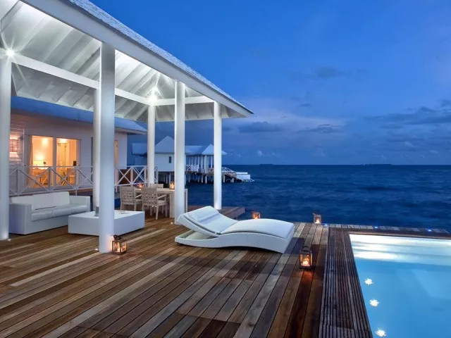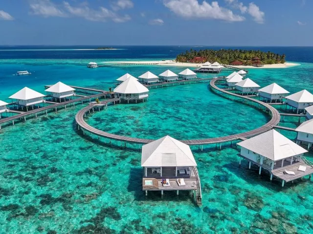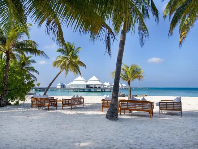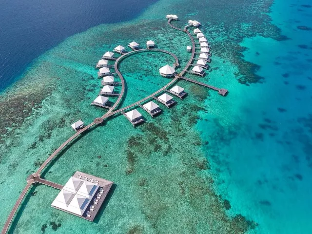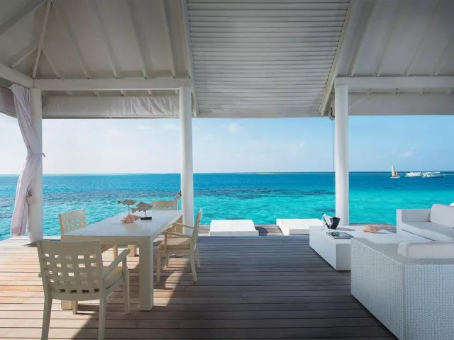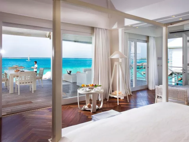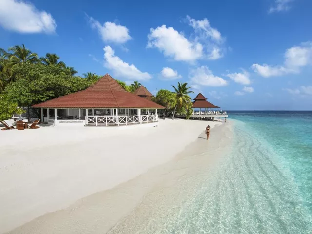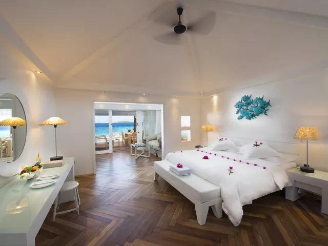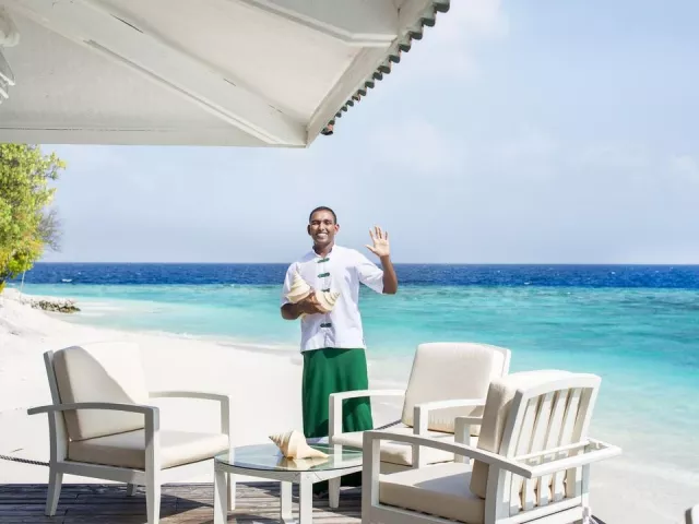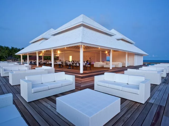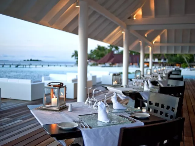 All Inclusive obsahuje raňajky, obedy a večere v bufetovej reštaurácii, neobmedzenú konzumáciu vybraných nápojov a občerstvenie v plážovom bare. Špeciálne jedlá sú k dispozícii pre hostí ubytovaných v izbách Water Vila.