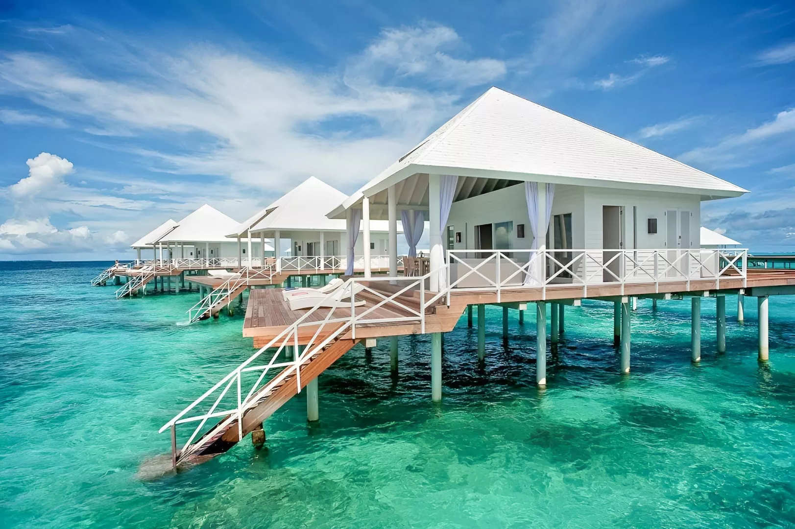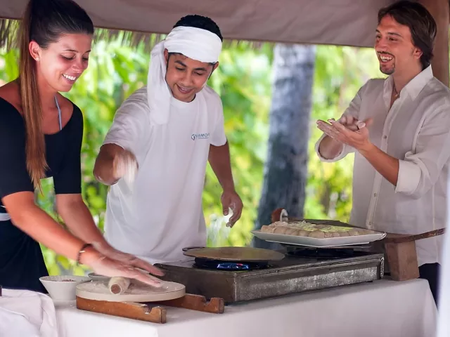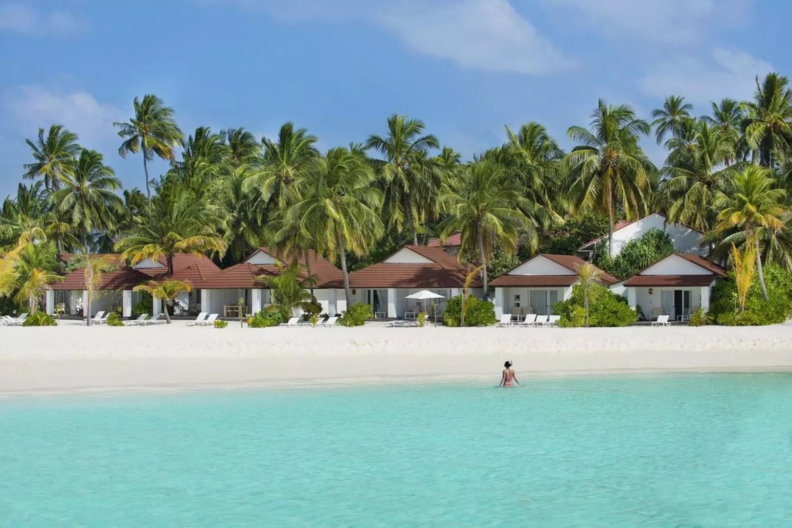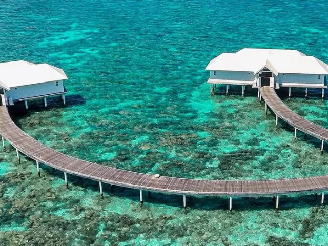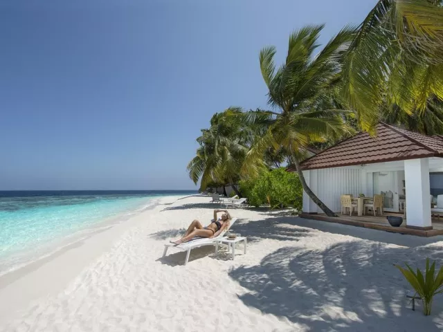 All Inclusive obsahuje raňajky, obedy a večere v bufetovej reštaurácii, neobmedzenú konzumáciu vybraných nápojov a občerstvenie v plážovom bare. Špeciálne jedlá sú k dispozícii pre hostí ubytovaných v izbách Water Vila.