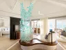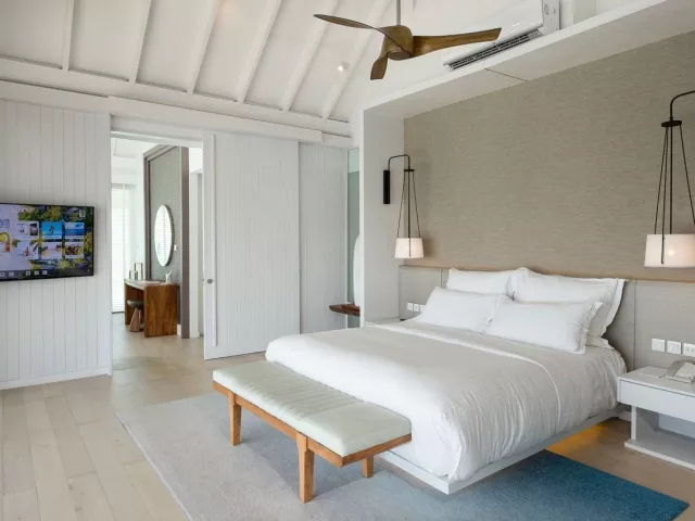 Na výber je desať typov ubytovania, vrátane pavilónov na pláži a víl nad lagúnou. Interiéri sú svetlé a vzdušné, zariadené v tropickom štýle. Plážový pavilón ponúka terasu s priamym prístupom na pláž, zatiaľ čo Beach Pool Villa má súkromný bazén a výhľad na oceán. Rodiny môžu zvoliť rodinné pavilóny so samostatnými spálňami.