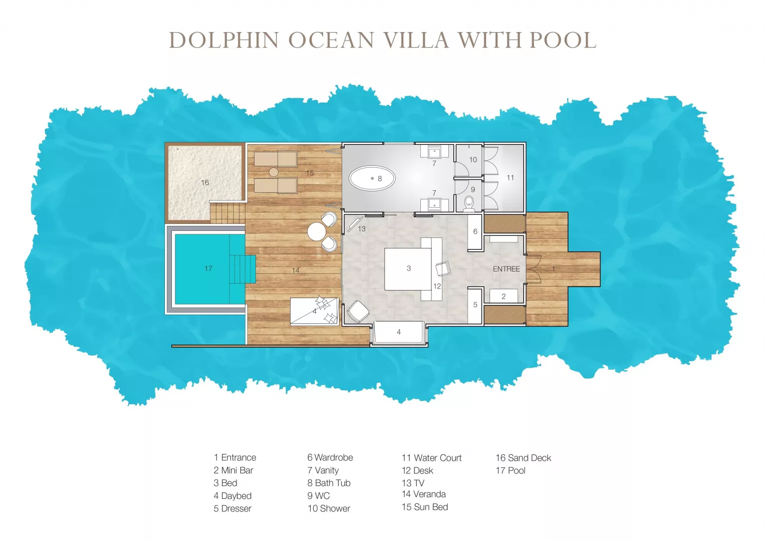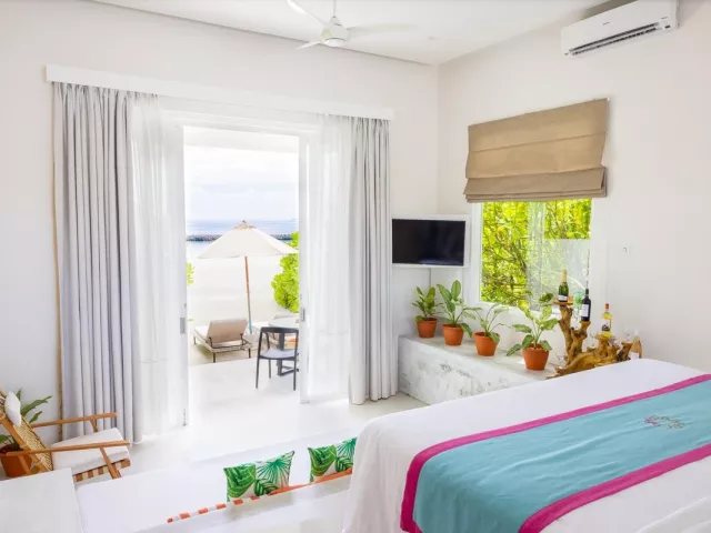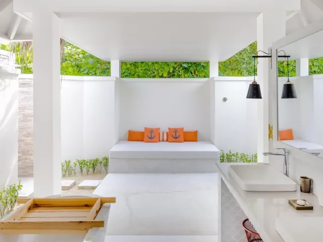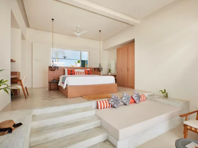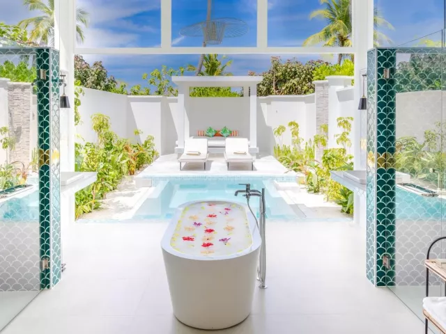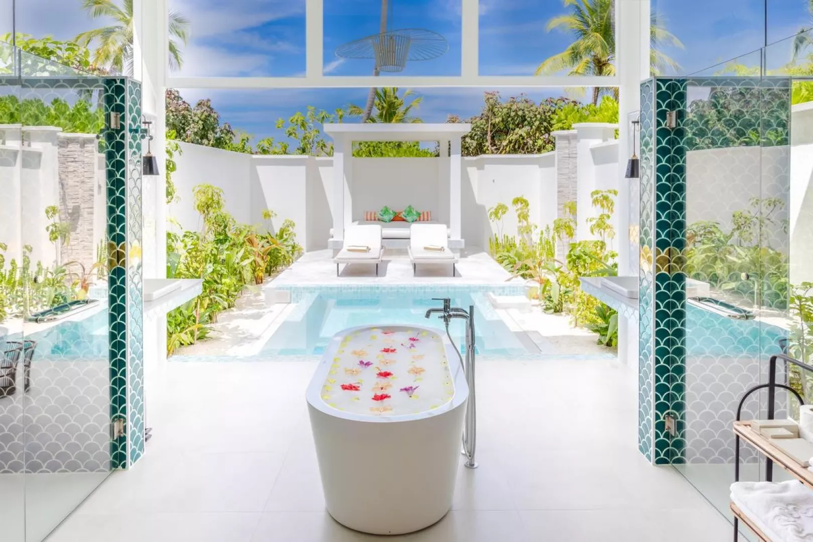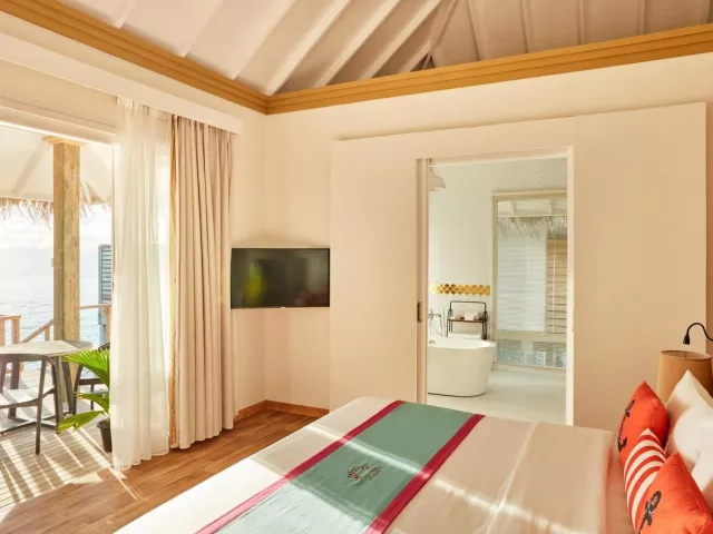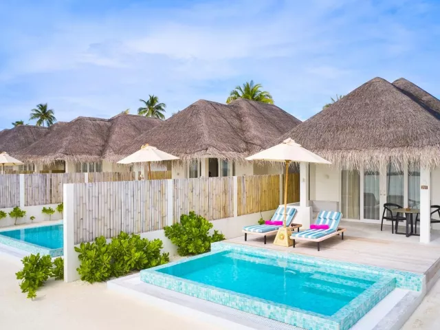 Izby zahŕňajú 125 svetlých víl s možnosťou výberu medzi plážovými a nadvodnými variantmi, pričom každá vila má vlastný bazén. Grand Beach Villa, Beach Villa with Pool a Ocean Villa with Pool sú iba niektoré z možností, ktoré offtujú elegantný dizajn, dostatok súkromia a priestrannosti, ideálne pre romantické pobyty aj rodinné výlety.