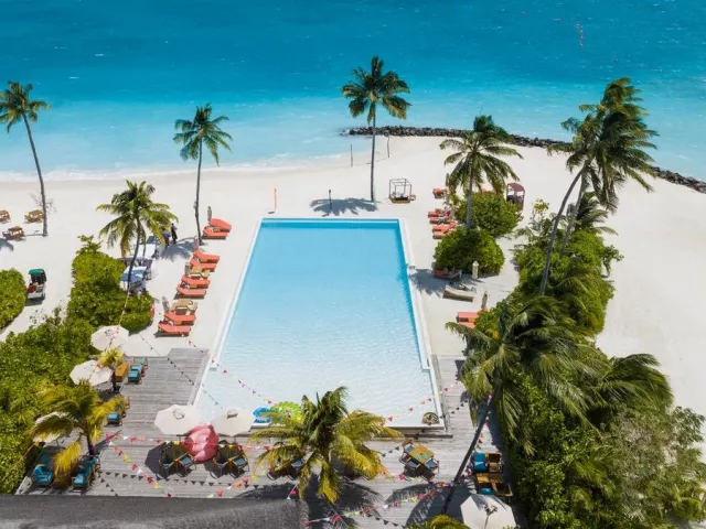 Ostrov je obklopený nádhernou plážou s jemným bielym pieskom a tyrkysovou lagúnou. Plážové vily poskytujú súkromný vstup, pričom západná strana ostrova je ideálna na vodné športy a na východnej strane sa nachádza pozvoľný vstup do vody, ktorá je vhodná na šnorchlovanie v blízkosti domového útesu.