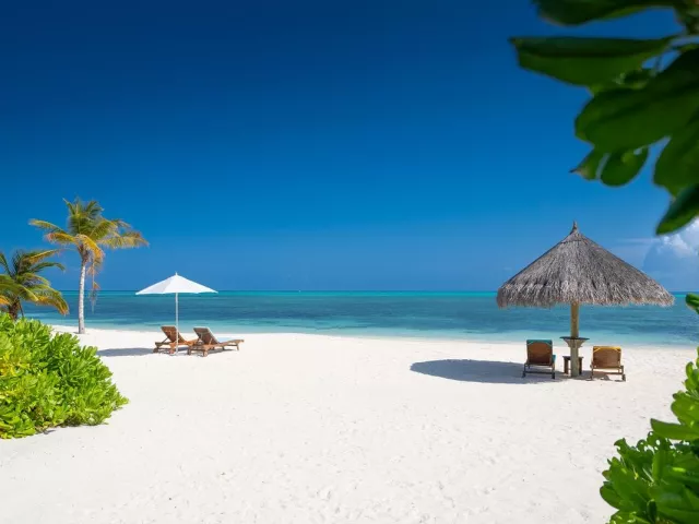 Rezort sa pýši dlhou piesočnatou plážou s jemným bielym pieskom, kde sú lehátka a slnečníky k dispozícii bezplatne.