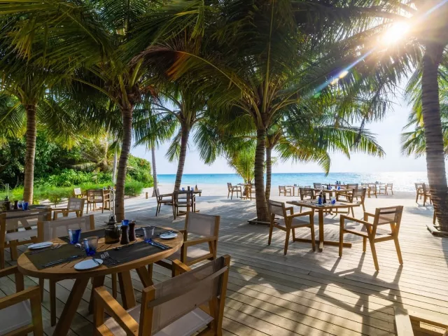 Rezort ponúka program All Inclusive, ktorý zahŕňa raňajky, obedy, večere a občerstvenie vo vybraných reštauráciách s možnosťou ochutnať medzinárodné a regionálne kuchyne. Hostia môžu využiť šesť reštaurácií a šesť barov roztrúsených po oboch ostrovoch, s bohatou ponukou jedál a nápojov.