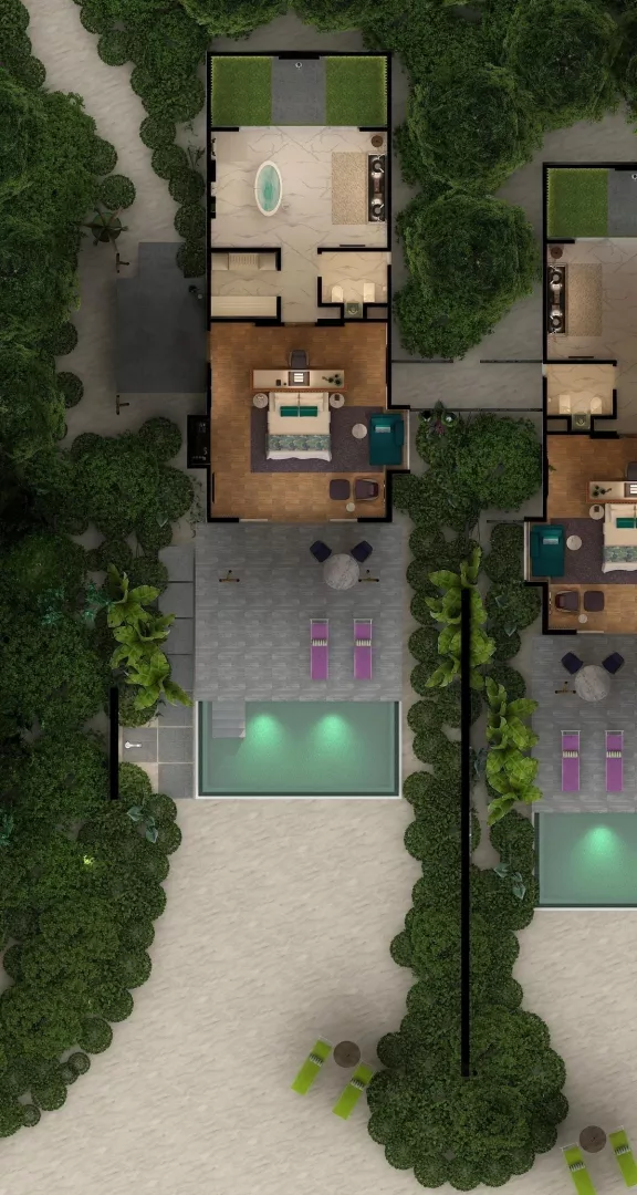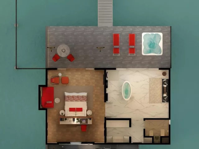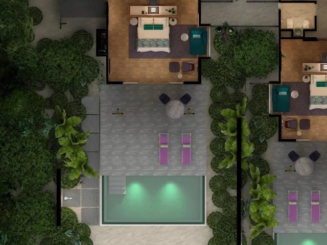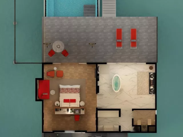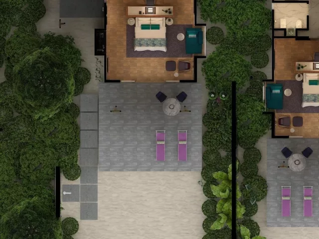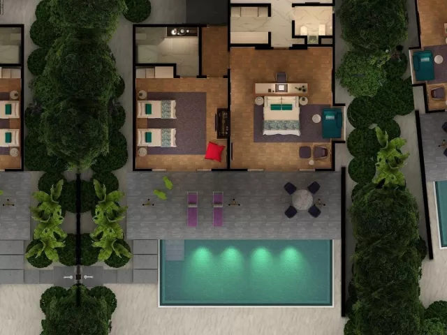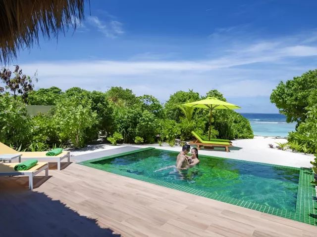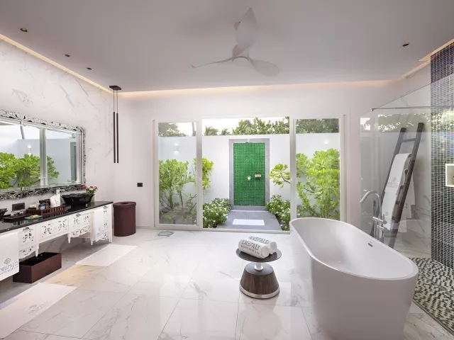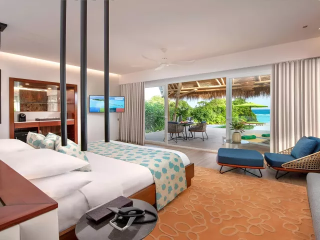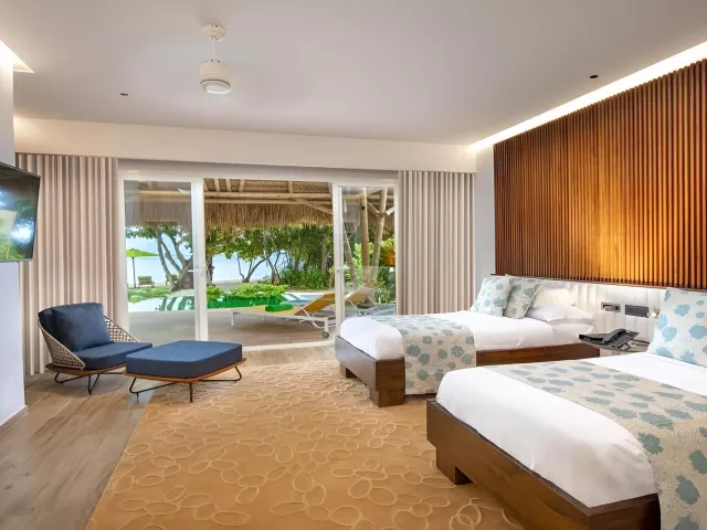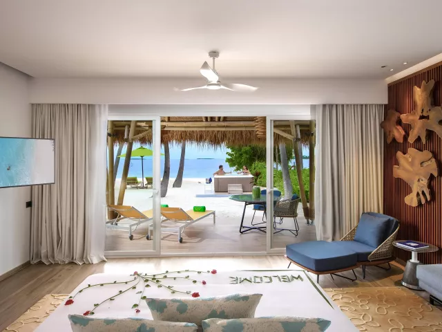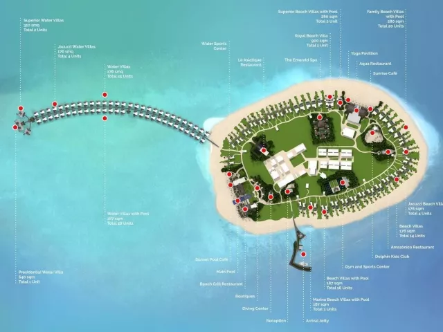 Rezort ponúka 120 vil, ktoré sú rozdelené medzi plážové a vodné varianty. Pokoje sú zariadené moderným nábytkom a vybavené všetkými potrebnými službami, vrátane súkromných bazénov a prístupu k oceánu. Vily sú navrhnuté s dôrazom na pohodlie a relax.