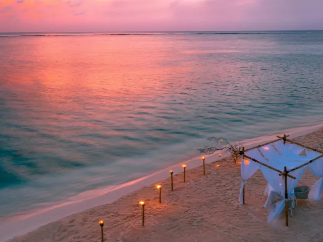 Pláže sú pokryté bielym jemným pieskom a obklopujú celý ostrov, čo zaisťuje dostatok súkromia. Plytká, tyrkysová lagúna je ideálna na plávanie a paddleboarding. Rezort organizuje šnorchlovacie a potápačské výlety, vrátane výletov za mantami a korytnačkami.