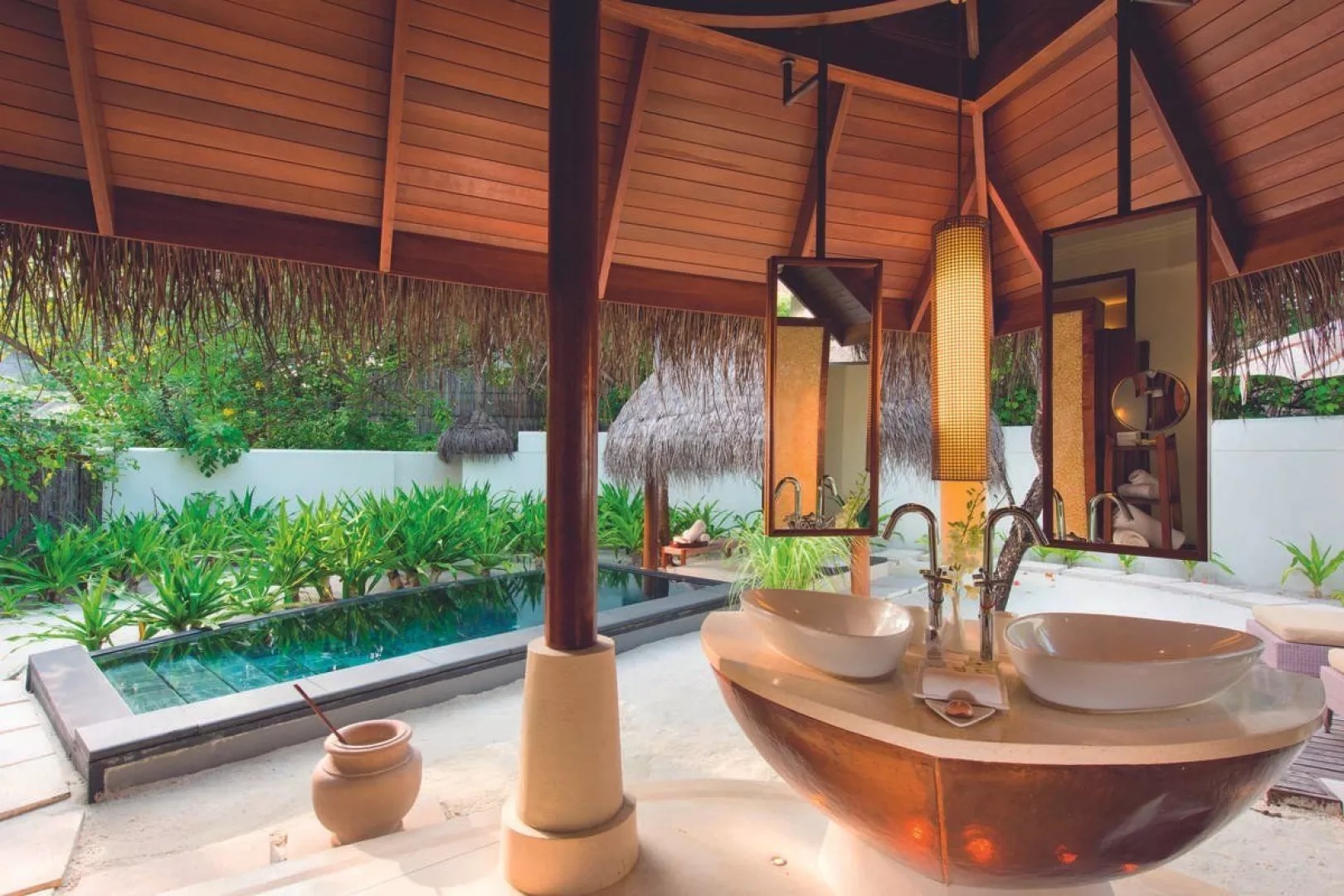 Vila na pláži s privátnym bazénom má rozlohu cca 350 m² a môže ubytovať 2 dospelé osoby a 1 dieťa. Vila sa nachádza blízko pláže, vybavená manželskou posteľou a pohovkou, pričom kúpeľňa je čiastočne otvorená s prístupom do privátnej záhrady, bazénom a pláži. Vila nad vodou s privátnym bazénom a rozlohou cca 100 m² ponúka výhľad na oceán a priame vstupy do mora.