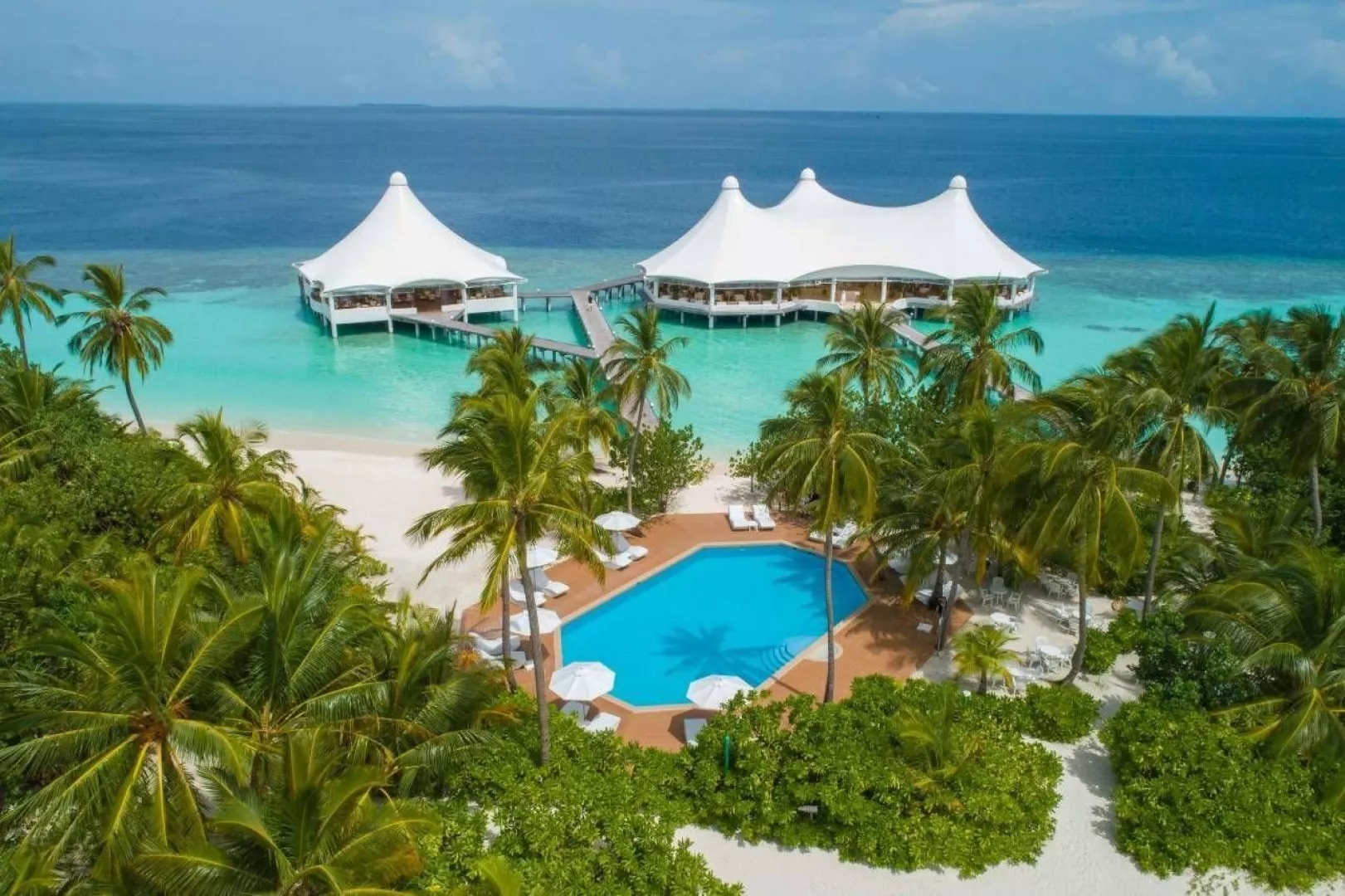 Pláže sú pokryté jemným bielym pieskom, pričom tyrkysová lagúna je plytká a pokojná, ideálna na kúpanie. House reef je dostupný z viacerých miest, čo je perfektné na šnorchlovanie. Rezort je tiež v blízkosti najlepších potápačských lokalít v Ari atole.