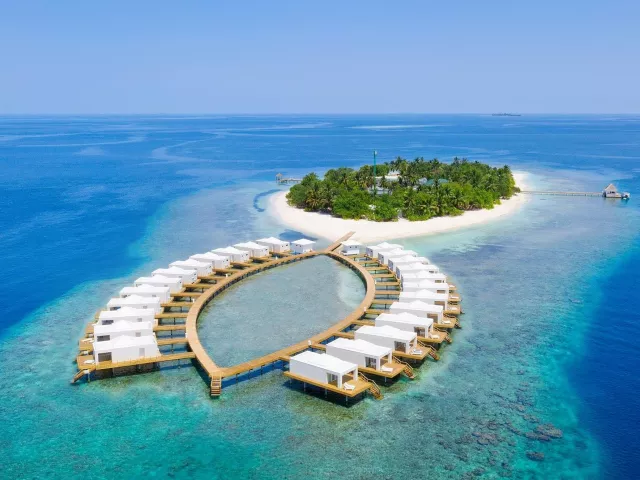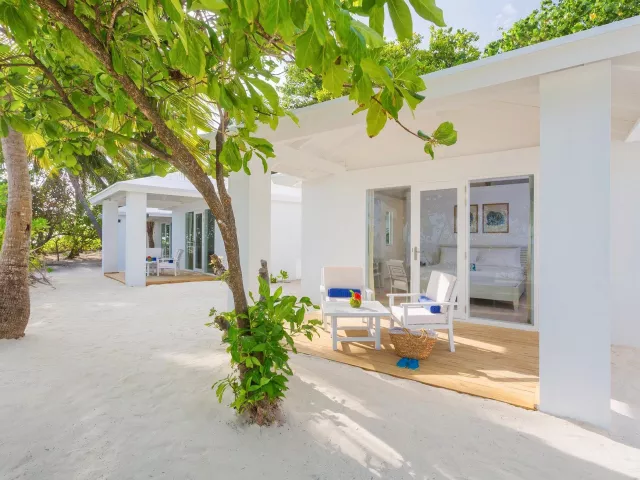 Beach Bungalow: 37 m², vila pri pláži so samostatným vstupom, polootvorenou kúpeľňou, sprchou, WC, sušičom vlasov, klimatizáciou, ventilátorom, mini chladničkou, trezorom, Wi-Fi, príslušenstvom na prípravu kávy/čaju a zariadenou terasou. Water Bungalow: 45 m², vodná vila s priamym prístupom k oceánu.