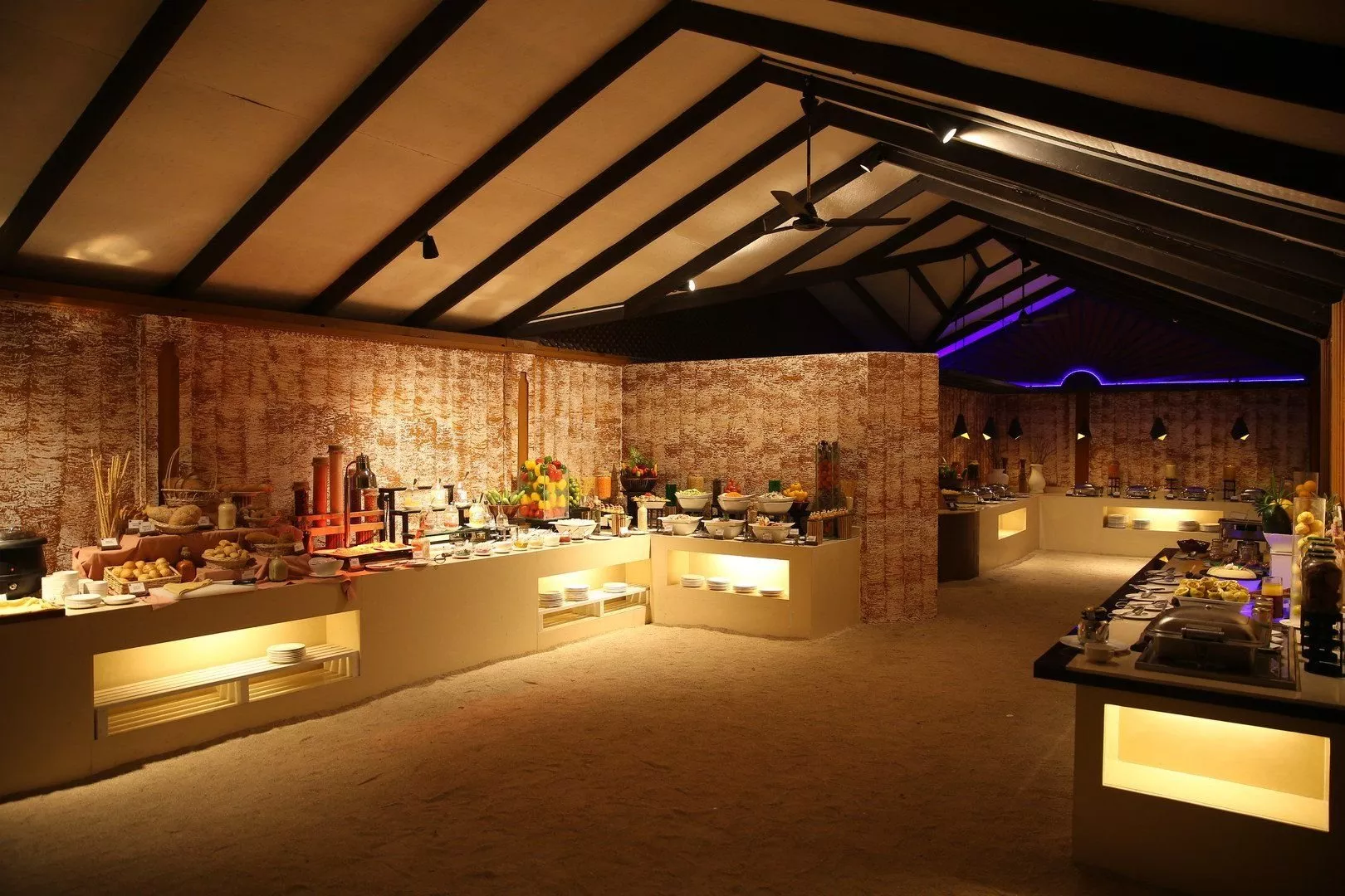Hlavná reštaurácia ponúka kombináciu medzinárodnej a maledivskej kuchyne formou bufetu, pričom návštevníci môžu vychutnať jedlá pripravené z čerstvých surovín s výhľadom na oceán. Plná penzia plus zahŕňa raňajky, obedy a večere vo forme bufetu, ako aj nealkoholické nápoje počas jedál. All Inclusive Plus dopĺňa výber koktailov a snacky počas dňa. K dispozícii je tiež bezplatné požičanie šnorchlovacieho vybavenia a nemotorizovaných vodných športov, ako sú kajaky a paddleboardy.