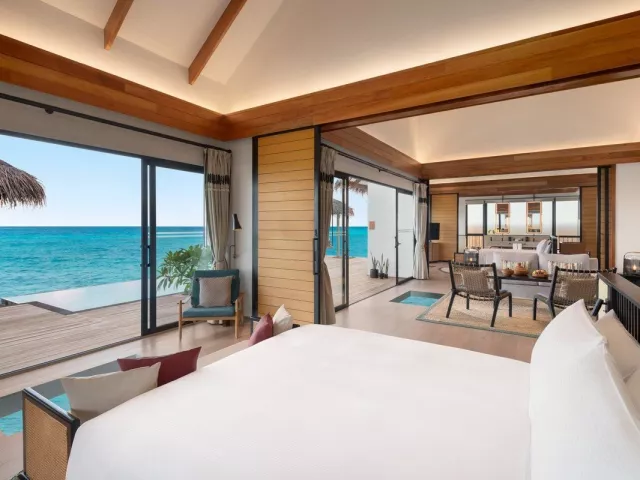 Rezort ponúka 109 víl, vrátane plážových a nadvodných víl, z ktorých každá má vlastný bazén a výhľad na oceán. Plážová vila s jednou spálňou má cca 138 m² a je vybavená manželskou posteľou, kúpeľňou so sprchou a vaňou, WC, fénom, župany, papučami, posedením, TV, klimatizáciou a vonkajším sedením s bazénom. Rodinná plážová vila tiež ponúka rovnaké vybavenie a zmestí až dvoch dospelých a dve deti do 12 rokov. Nadvodná vila s jednou spálňou má rovnaké vybavenie a priamy prístup do oceánu.