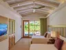 Piesočnatá pláž s jemným bielym pieskom poskytuje pokojné prostredie na oddych.